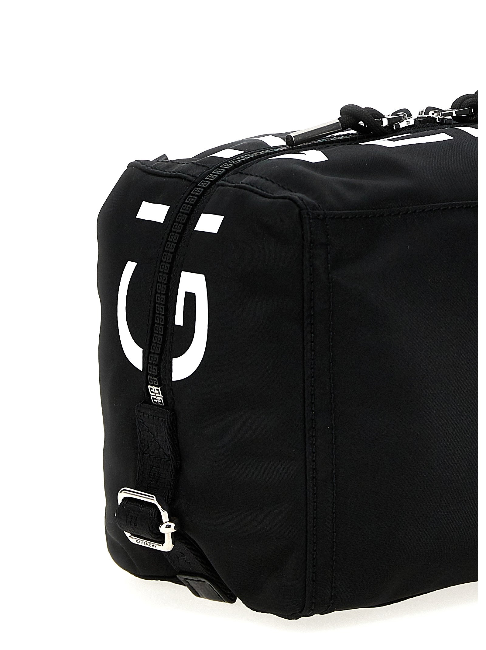 'Pandora' small nylon crossbody bag with zip closure, metal logo detail, adjustable shoulder strap.