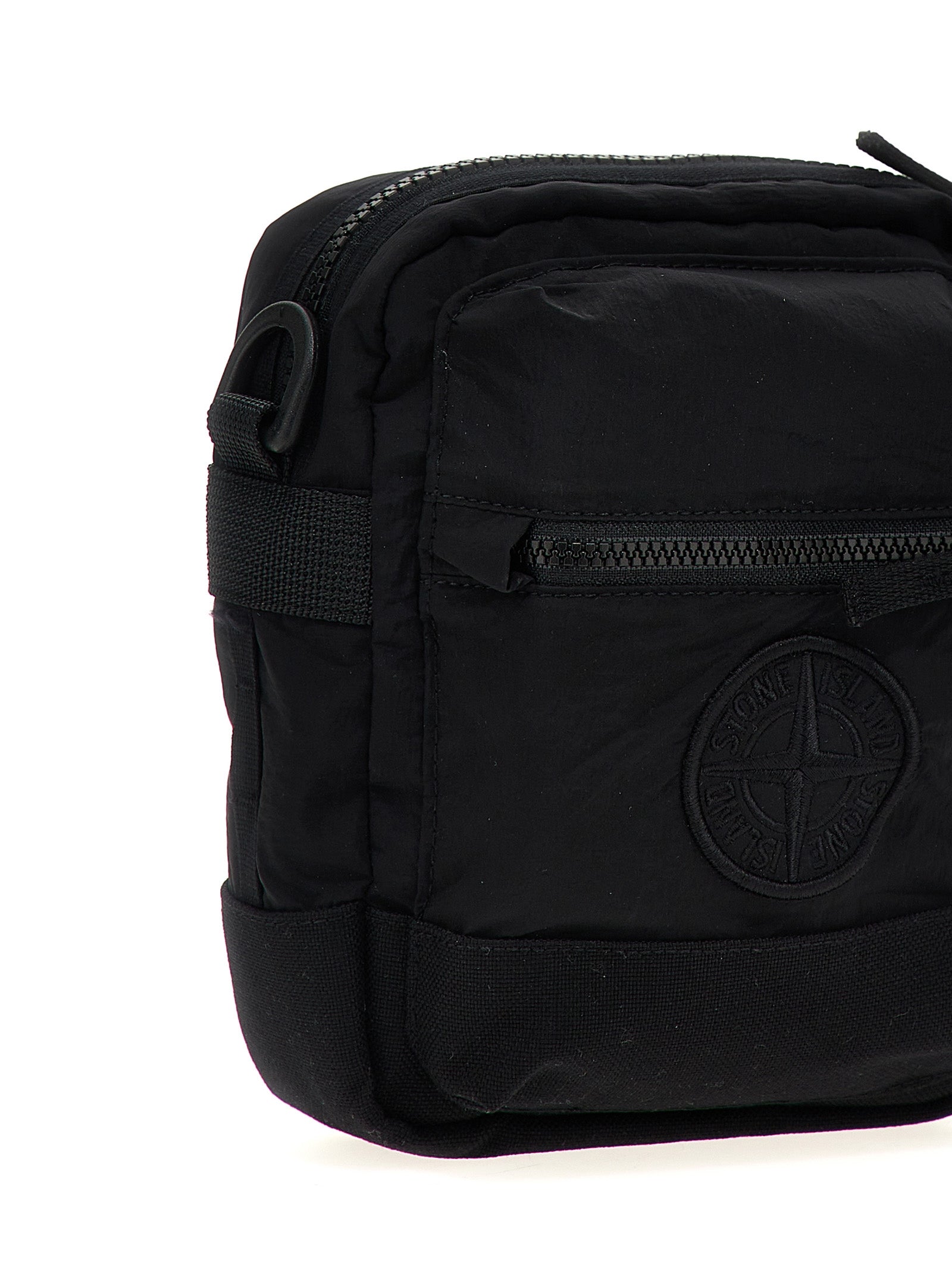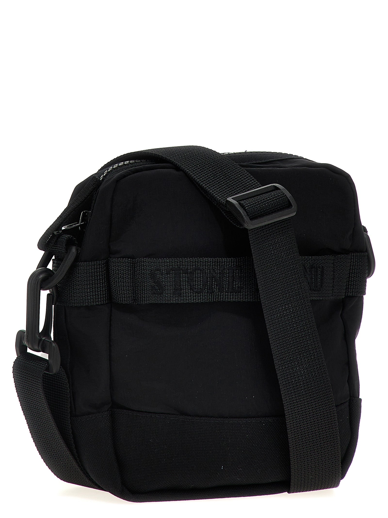 Nylon shoulder strap with front logo patch, zip closure, adjustable and removable shoulder strap.