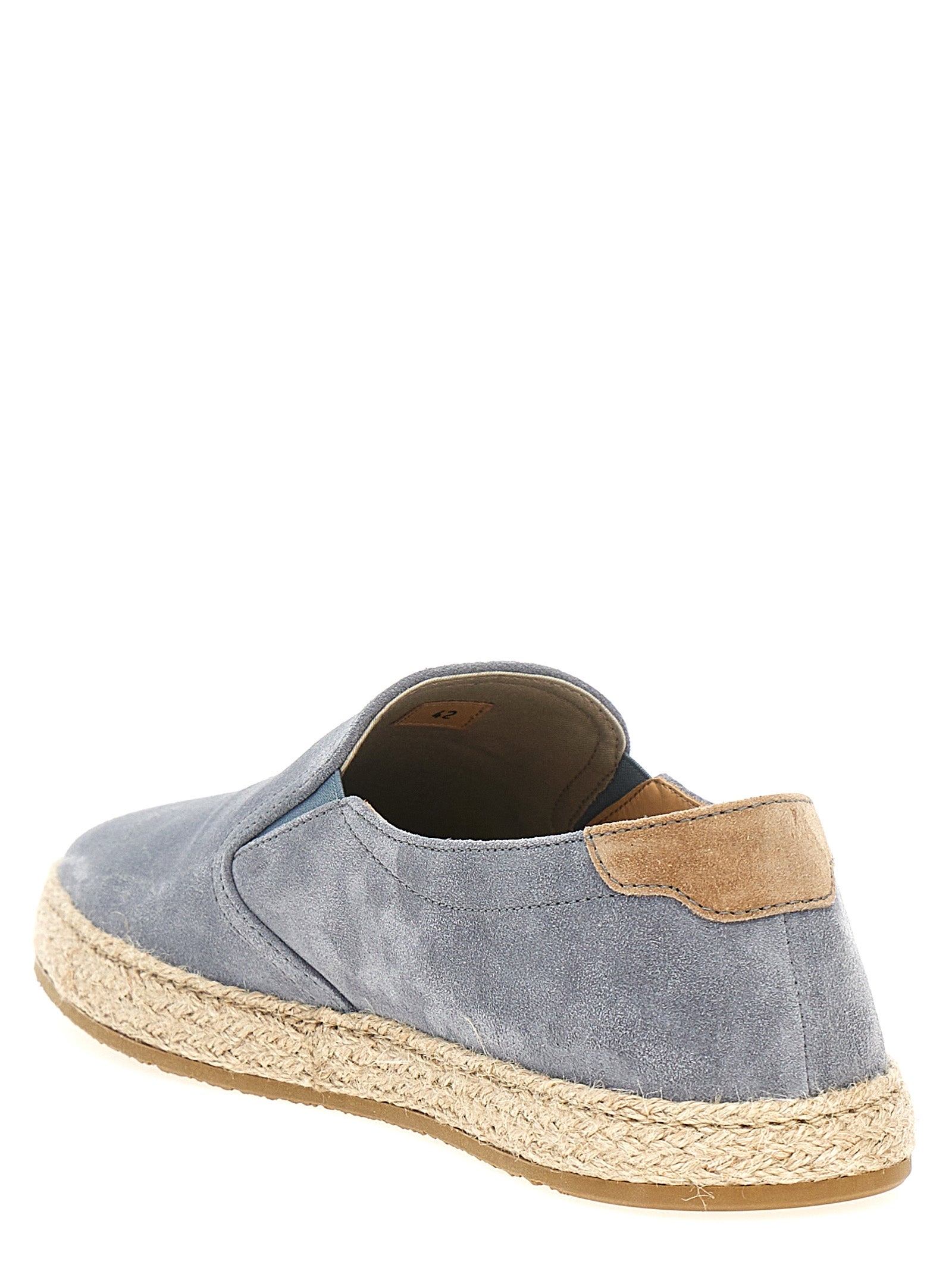 Suede espadrilles, side elestics, rope and rubber sole, contrast heel.