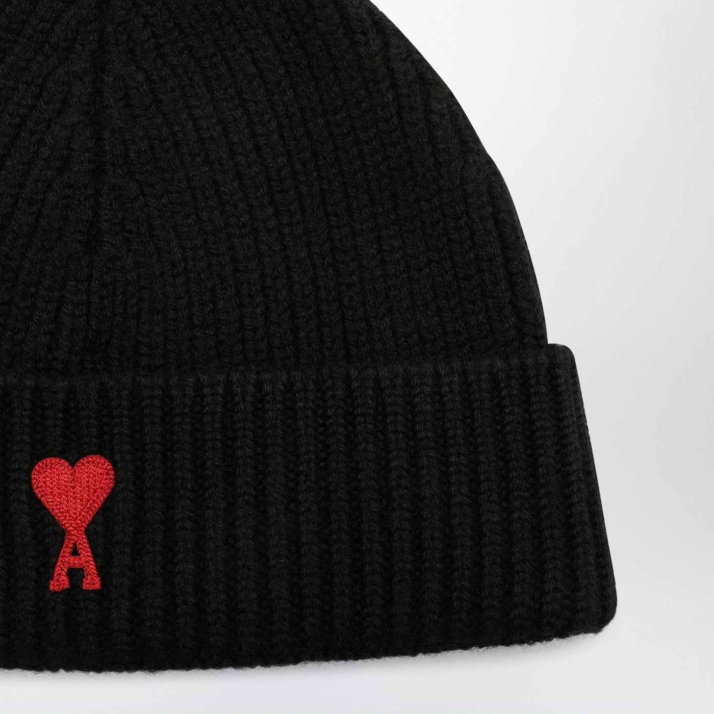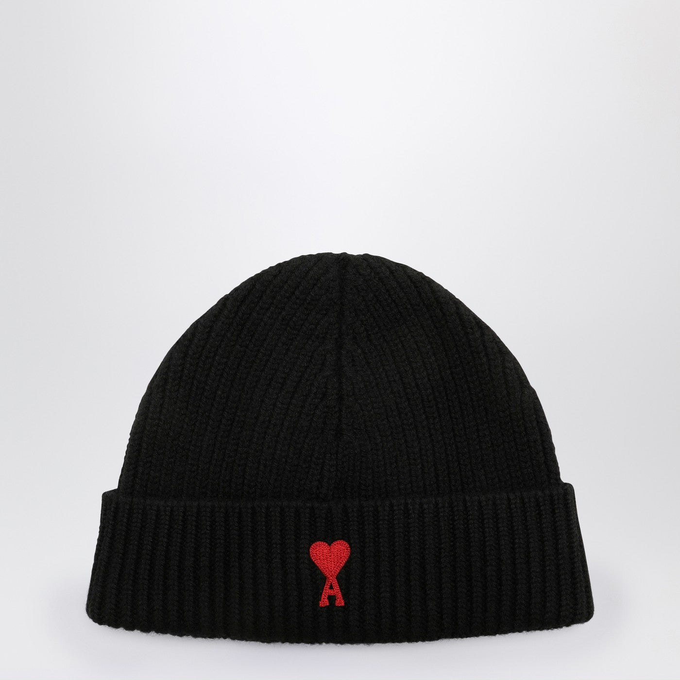 Ami Paris wool knit hat, featuring a ribbed design and Ami De Coeur embroidery on the front.