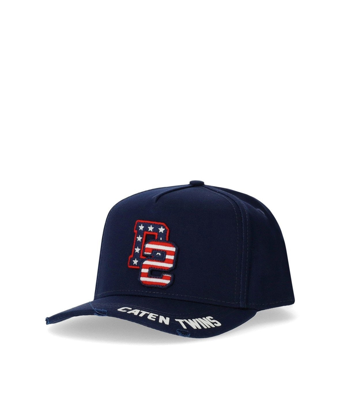 Dsquared2 College baseball cap made in blue cotton gabardine. Logo patch that recalls the American flag, contrasting rubberized slogan on the visor. Adjustable strap. Composition: 100% cotton.