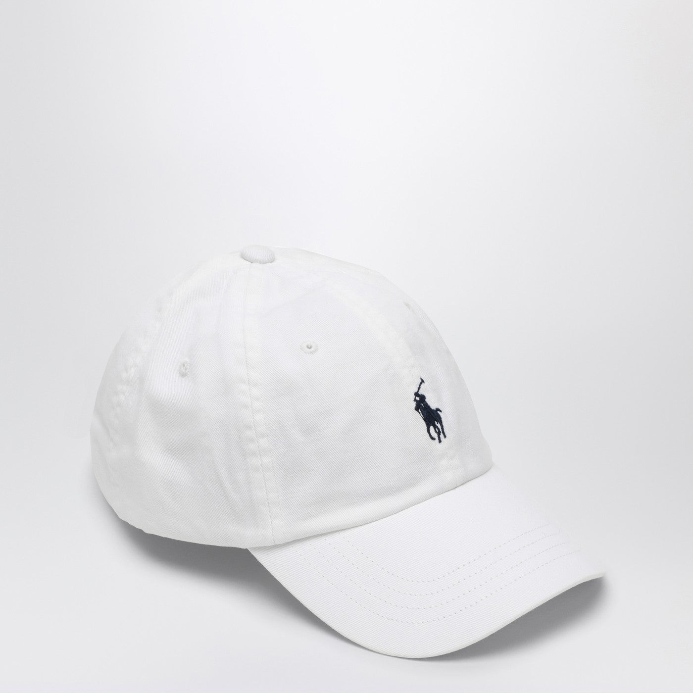 White cotton baseball cap by Polo Ralph Lauren, featuring an adjustable fit at the back, lettering logo embroidery on the back and logo embroidery on the front.