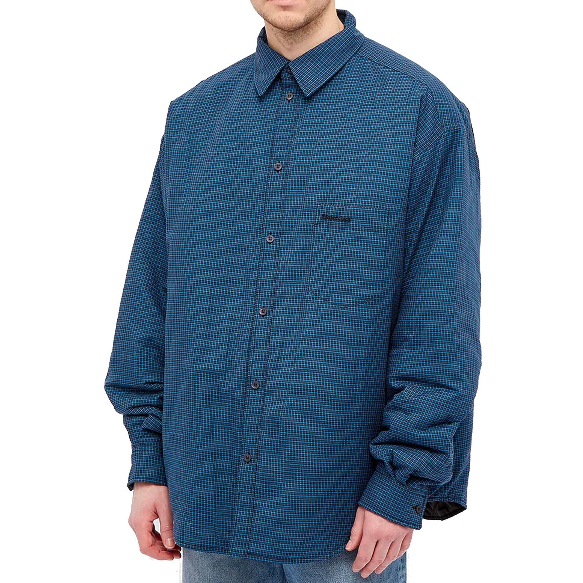 - Composition: 100% cotton - 100% Cupro Lining - Smart turquoise check pattern - Button closure - Long sleeves - Buttoned cuffs - One front patch pockets - Logo embroidery - Made in Italy -