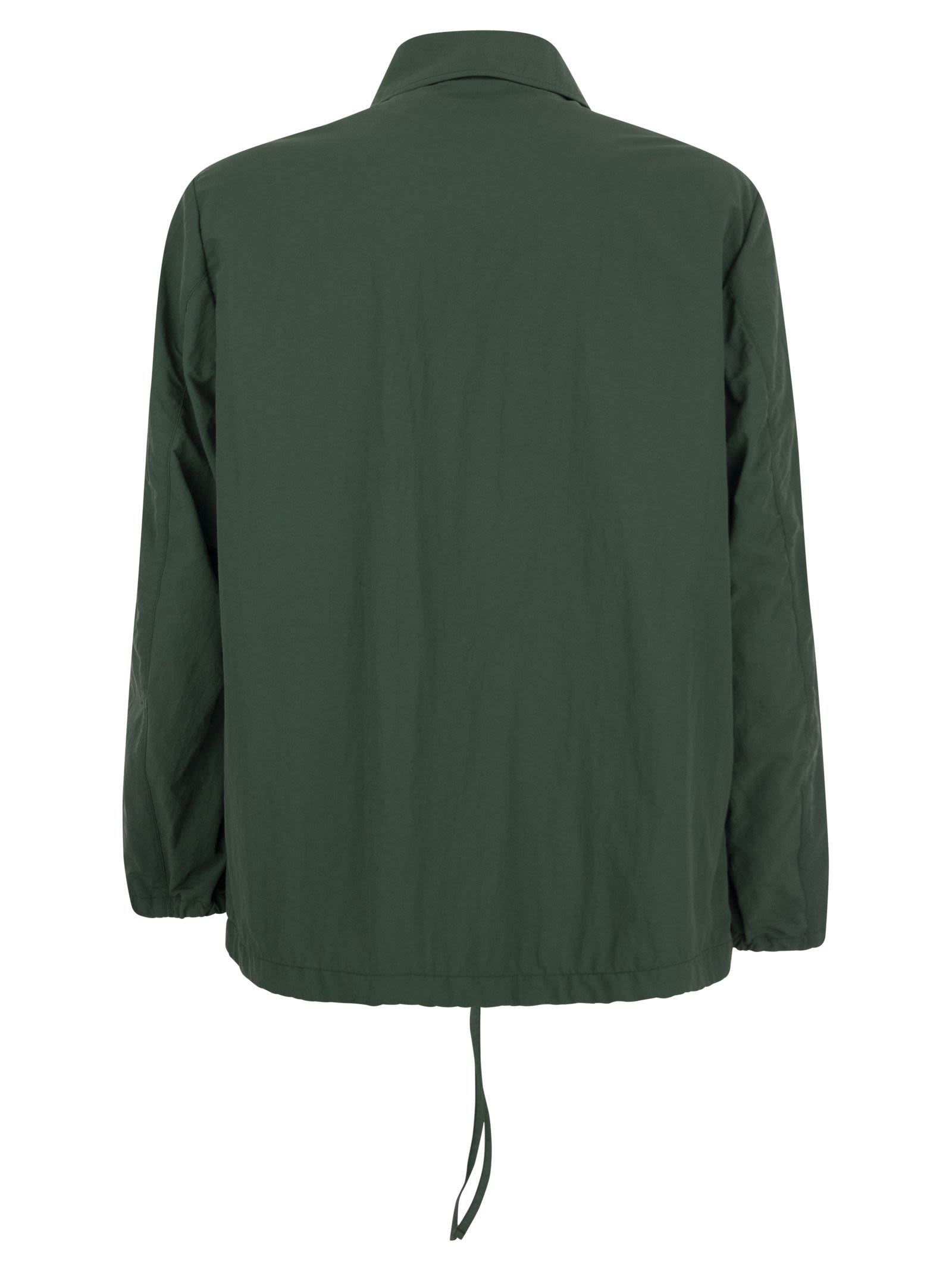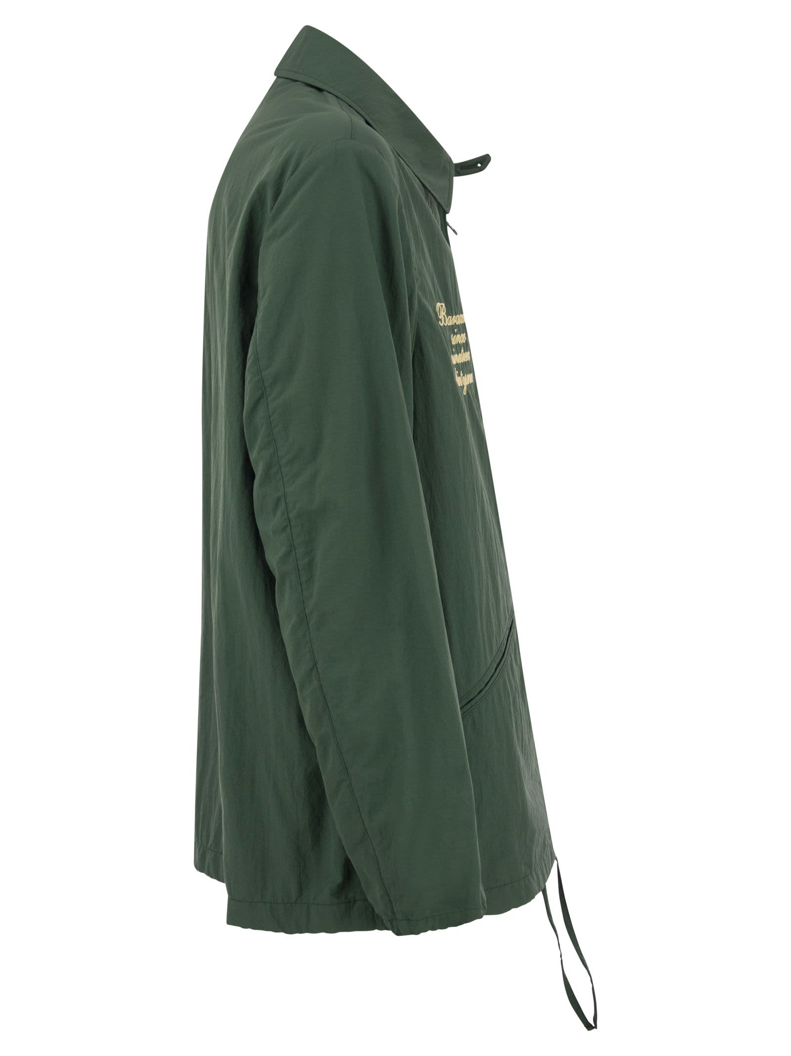 The passion for varsity garments continues into the SS23 season with the Nylon Coach jacket! Thanks to its lightness, it is ideal for cool spring days or summer downpours. The garment features the B logo on one side of the chest in Terry Cloth and the brand's founding date on the other side. A drawstring along the hem makes it easy to adjust the fit of the garment. Perfect for leisure wear. - Shirt-style collar with one button - Terry cloth 'B' logo patch on left chest side - Embroidered brand lettering on right chest side - Raglan sleeve - Elasticated cuffs - Two-way tone-on-tone zip with windproof flap - Drawstring for adjusting the fit at the waist - Side pockets - Hanger on the inside - Length: to mid-thigh - Wide fit DESIGNER ID: BRCPS0933 UT2616 6368