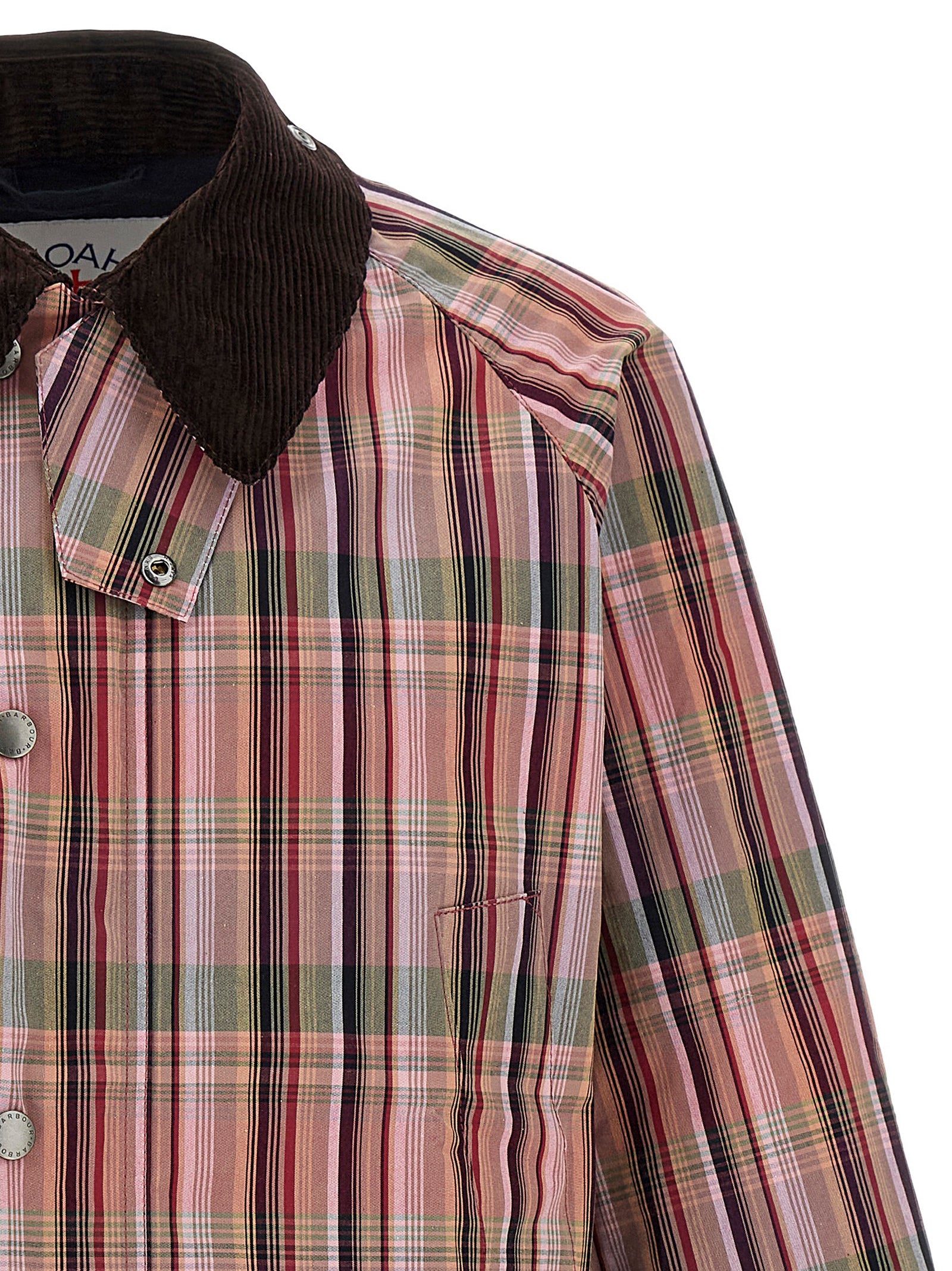 Barbour x NOAH 'Bedale' waxed fabric jacket with Hybrid-Aero madras dry finish, maxi logo embroidery lining, corduroy collar, removable chinstrap, zip closure and front snap buttons, pockets, long sleeves with windproof cuffs.