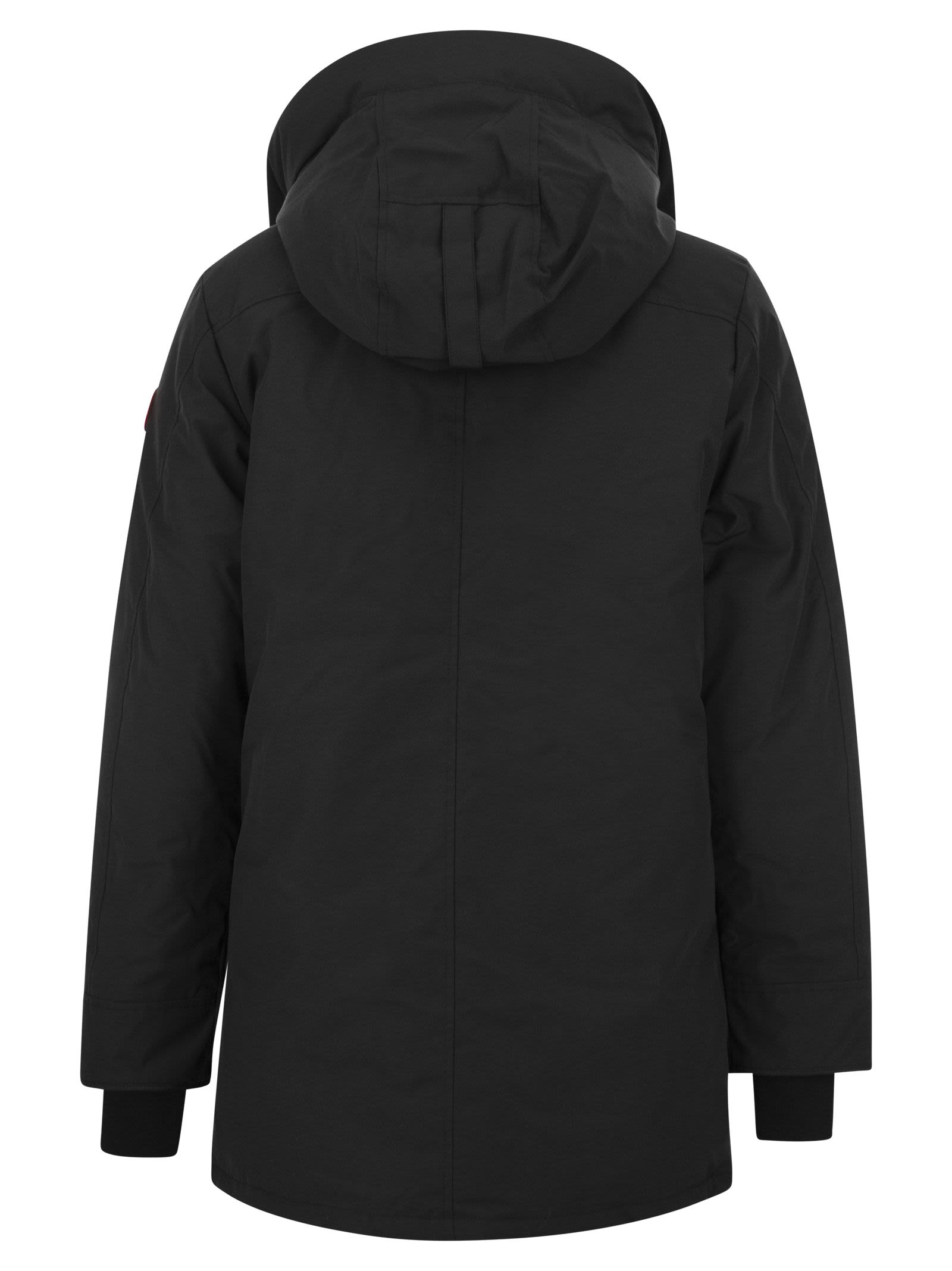 Designed for unparalleled defence against the cold, the Chateau parka is a classic winter essential. Updated with streamlined hood details and additional backpack straps, this fitted silhouette has a protective mid-leg length and is finished with stretch ribbed knit cuffs to retain warmth. - Goose Down Padding - Logo on the left arm DESIGNER ID: 2053M 61