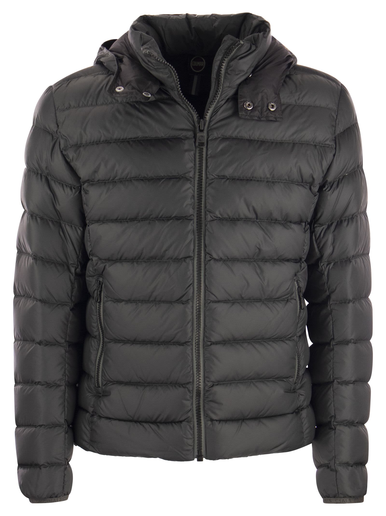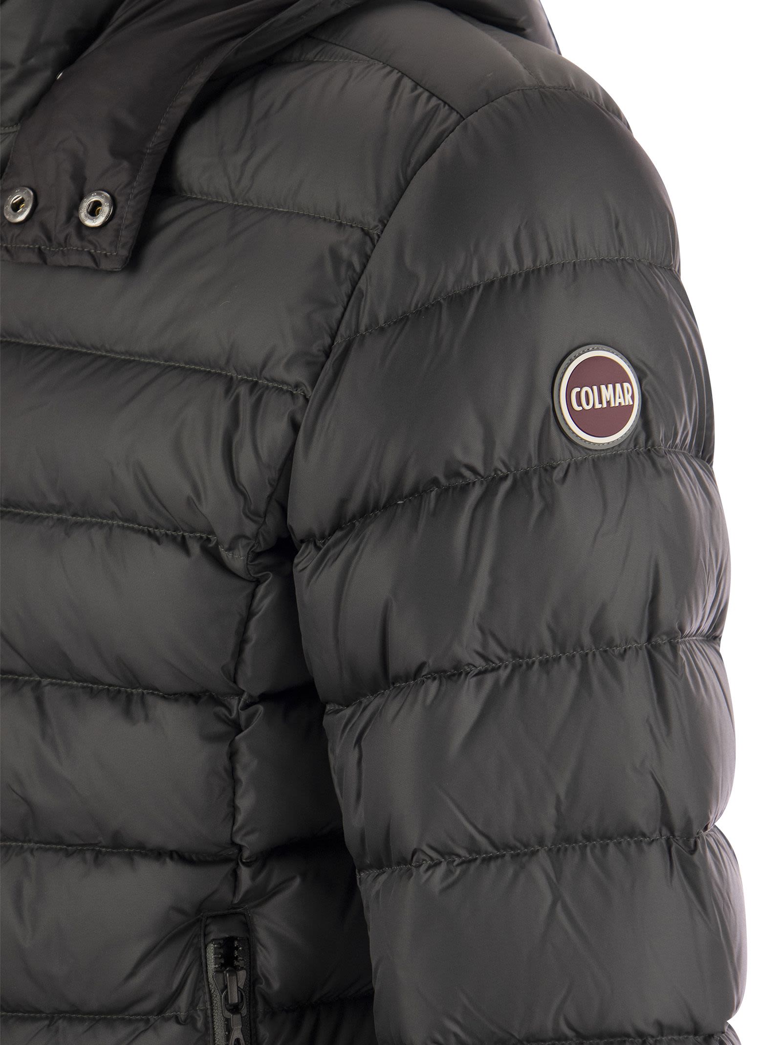 Men's jacket with detachable hood, made of semi-gloss fabric with a soft hand and padded with natural down. An iconic Colmar Originals model proposed in new shades for the winter season. - Zip closure - Side pockets and inside zip pocket - Detachable hood with press studs - Elastic ribbon at cuffs - Adjustable drawstring at hem - Natural down filling - Colmar Originals logo applied on left sleeve DESIGNER ID: 1250R 9WY 475