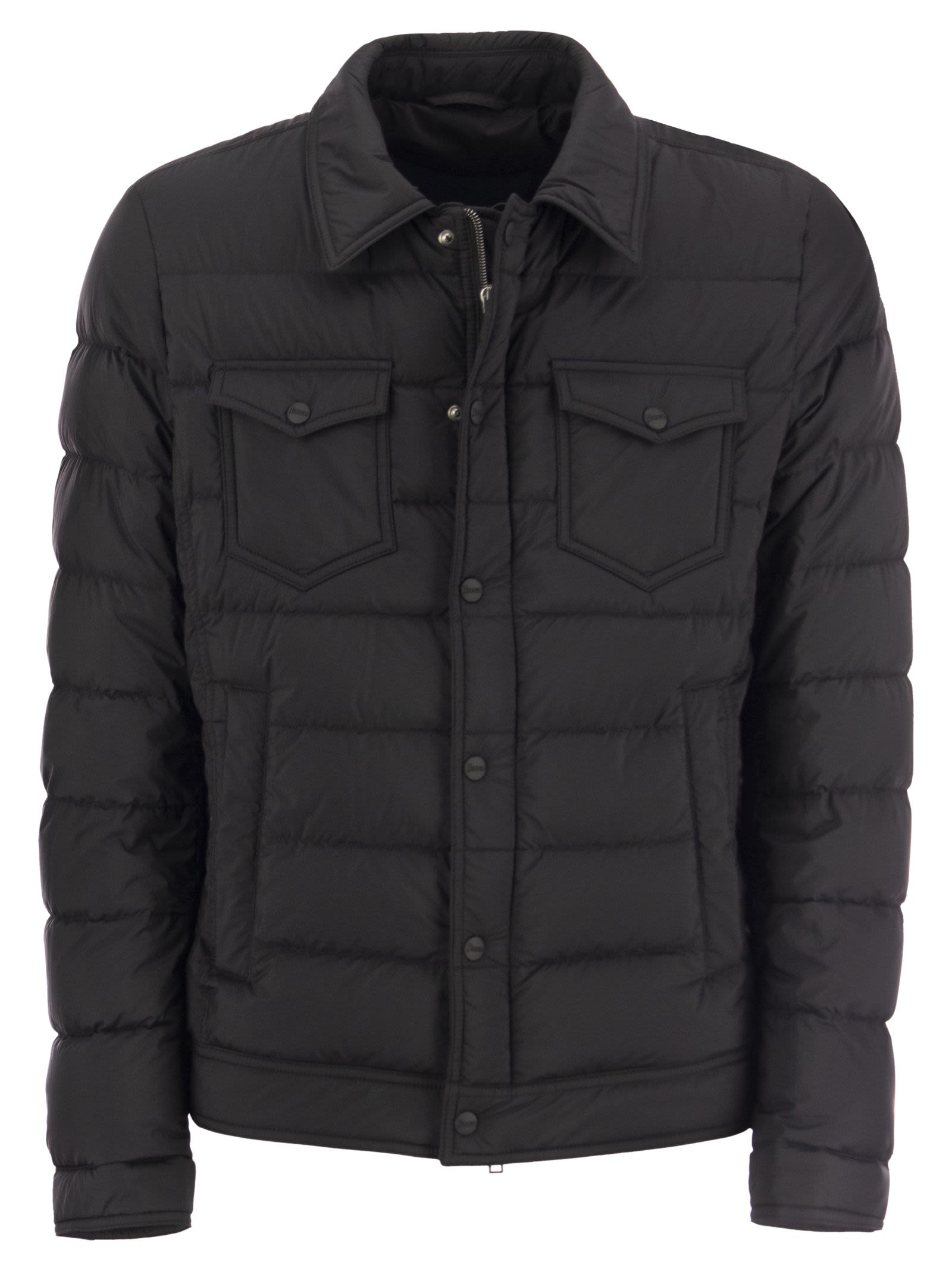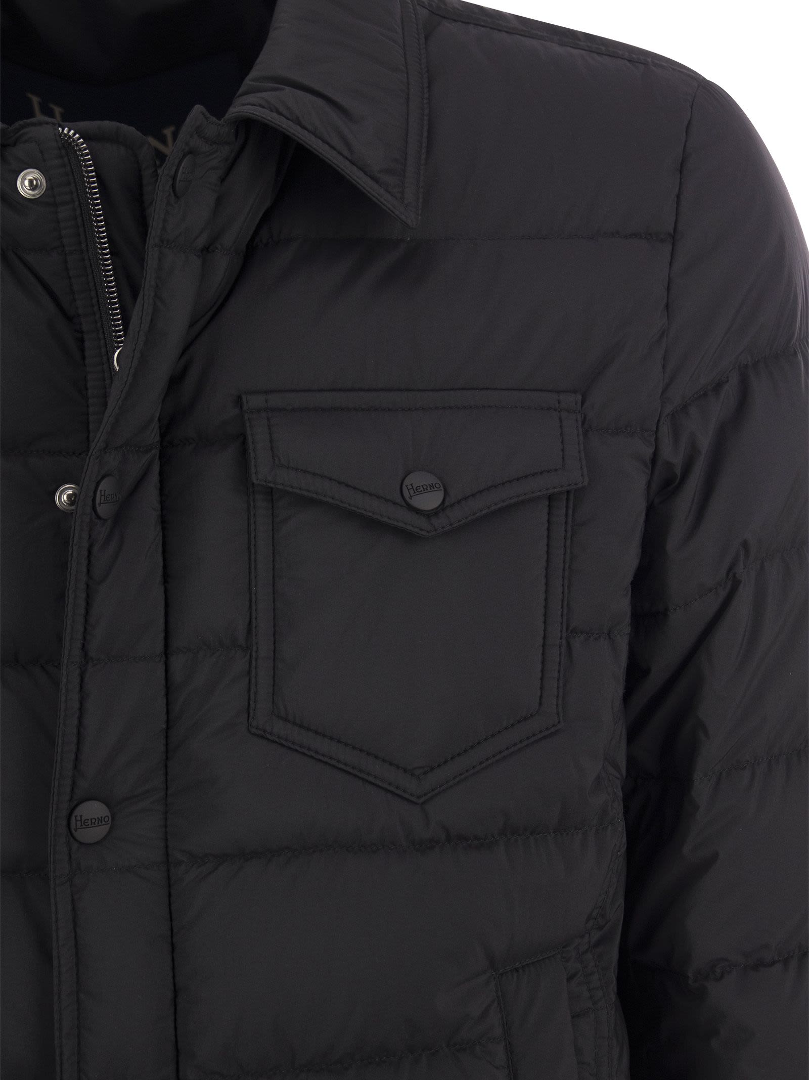 Herno's new proposal, the Denim Jacket, traditional and legendary, proposed in 20 denier Nuage nylon, injection-padded with fine goose down, light, impalpable, practical and contemporary. Featuring a shirt collar and cuffs, four practical pockets and buckles that adjust the fit. - Regular fit - Fine finishing on the inside - Snap fastening and zip with double slider - Adjustable fit - Contrasting details on the inside - Patch and welt pockets with snap fasteners DESIGNER ID: PI011ULE 19288 9300