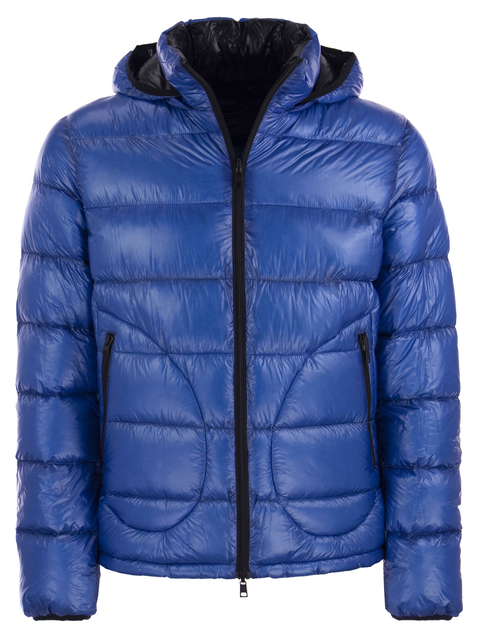 Hooded down jacket made of Herno's iconic ultralight nylon: an innovative technical fabric that combines good water resistance with a particularly luxurious silk-like feel. The model has an essential design with side pockets and hood. The garment's proportions are designed to follow your movements and ensure an impeccable fit, while the fine down filling is soft, light and retains warmth. - Regular fit - High collar - Two-way zip fastening - Side pockets - Hood - Down filled - Reversible DESIGNER ID: PI000903U 12398 9243