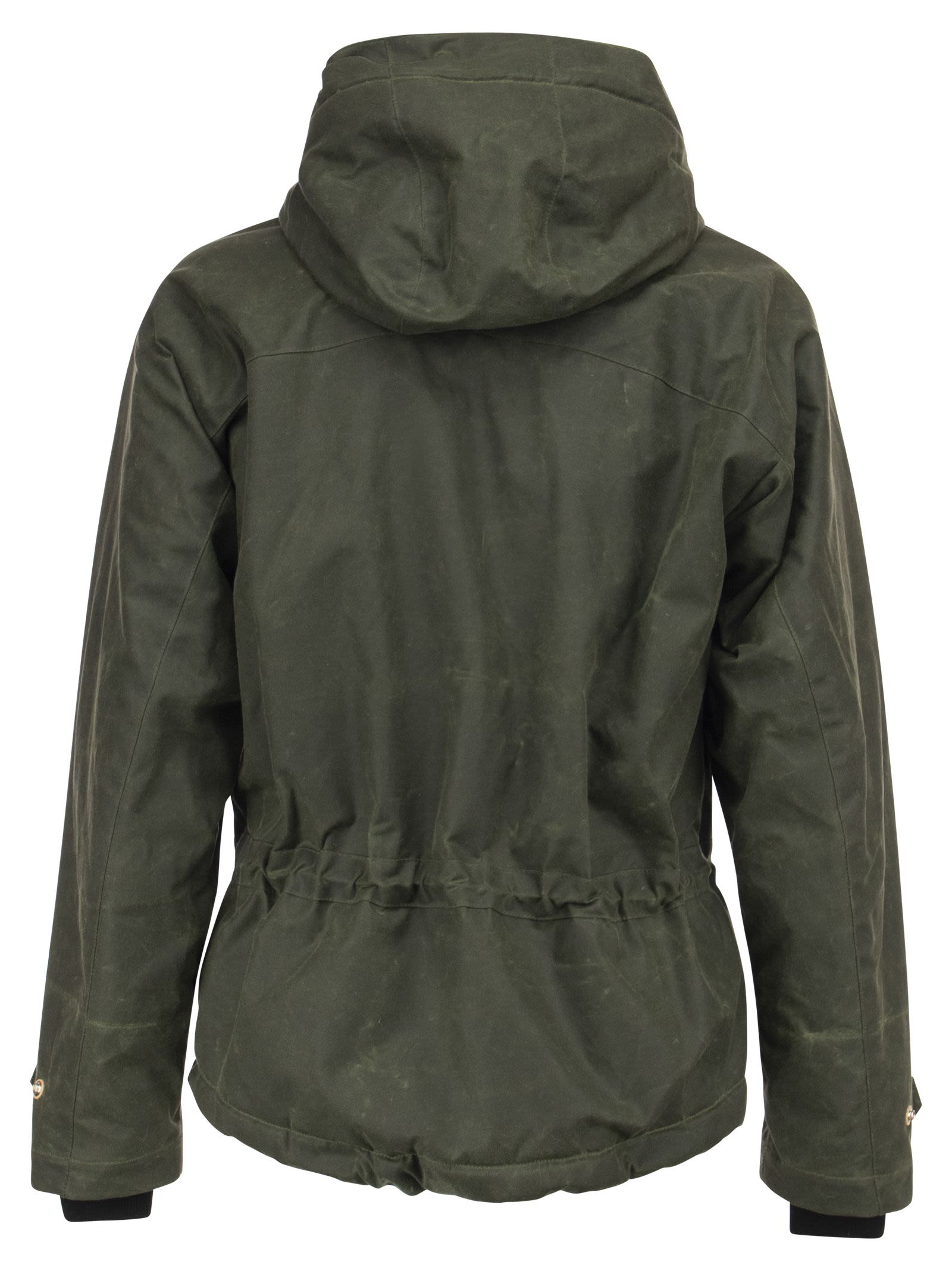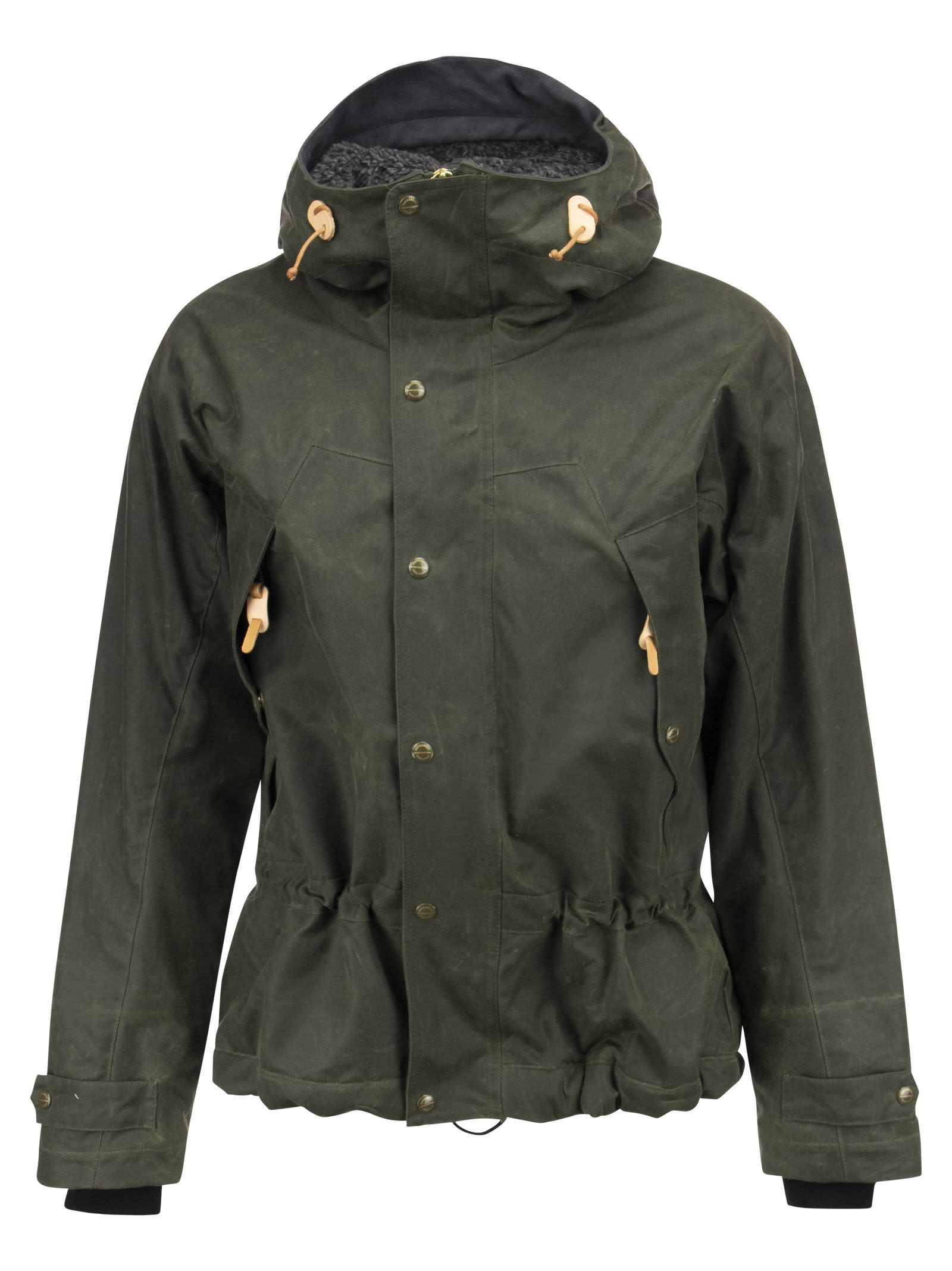 Made of lightweight dry cotton treated with paraffin fibre, which makes it water-repellent. It is the perfect jacket for the bad season as the ultimate protection against rain and wind, padded with wool. It has raglan sleeves with adjustable cuffs, it has two hand-warming pockets with flaps, it has a drawstring waist with a natural leather drawstring stopper, a comfortable hood with a drawstring to make it adhere to the face, it has a zip with a double slider in front. DESIGNER ID: 7003-WX D/GREEN