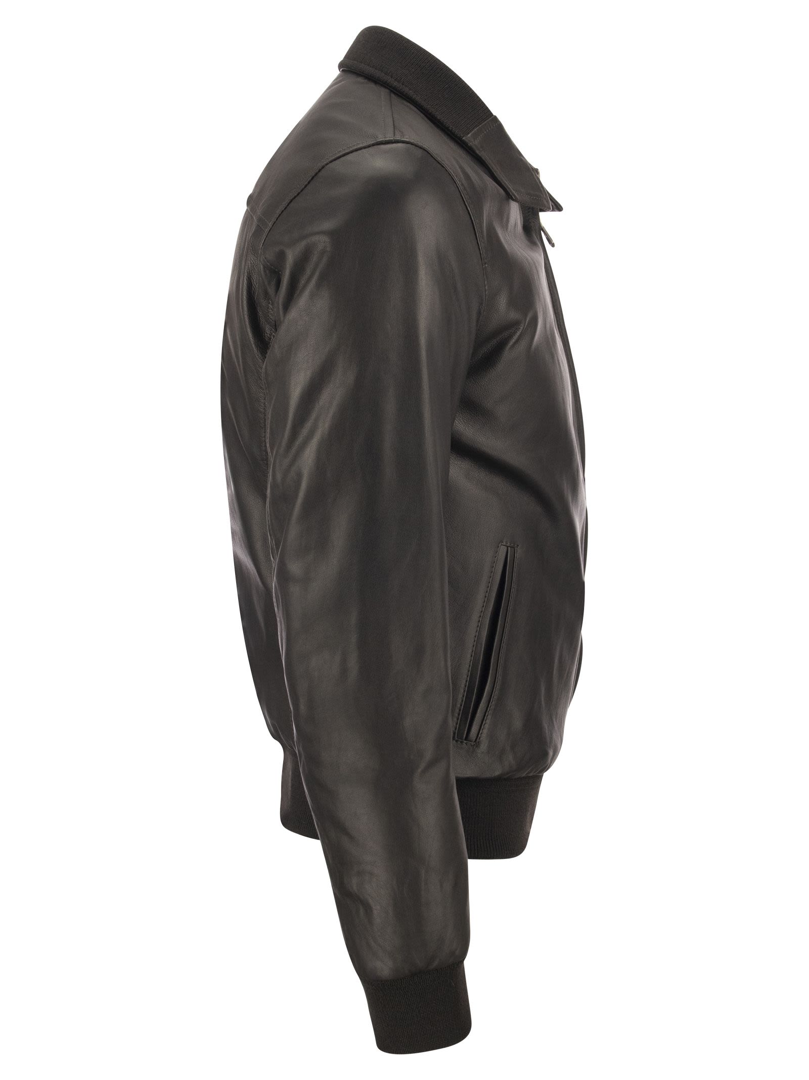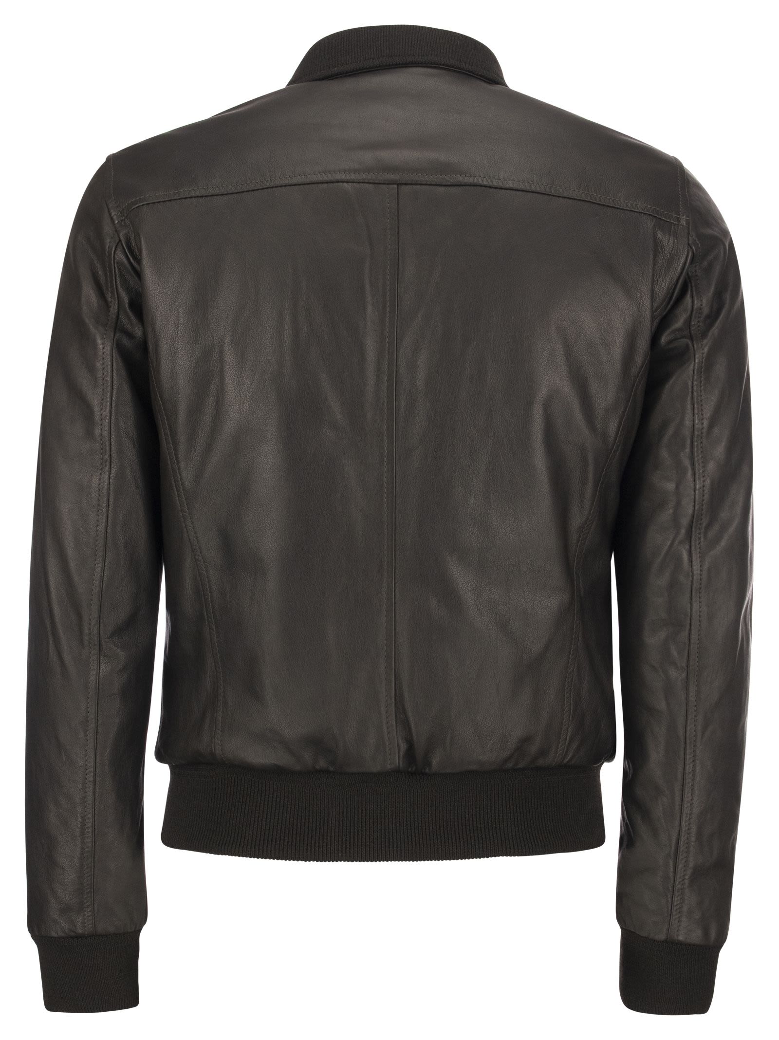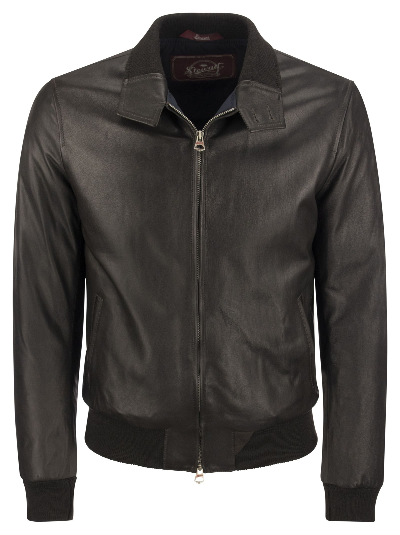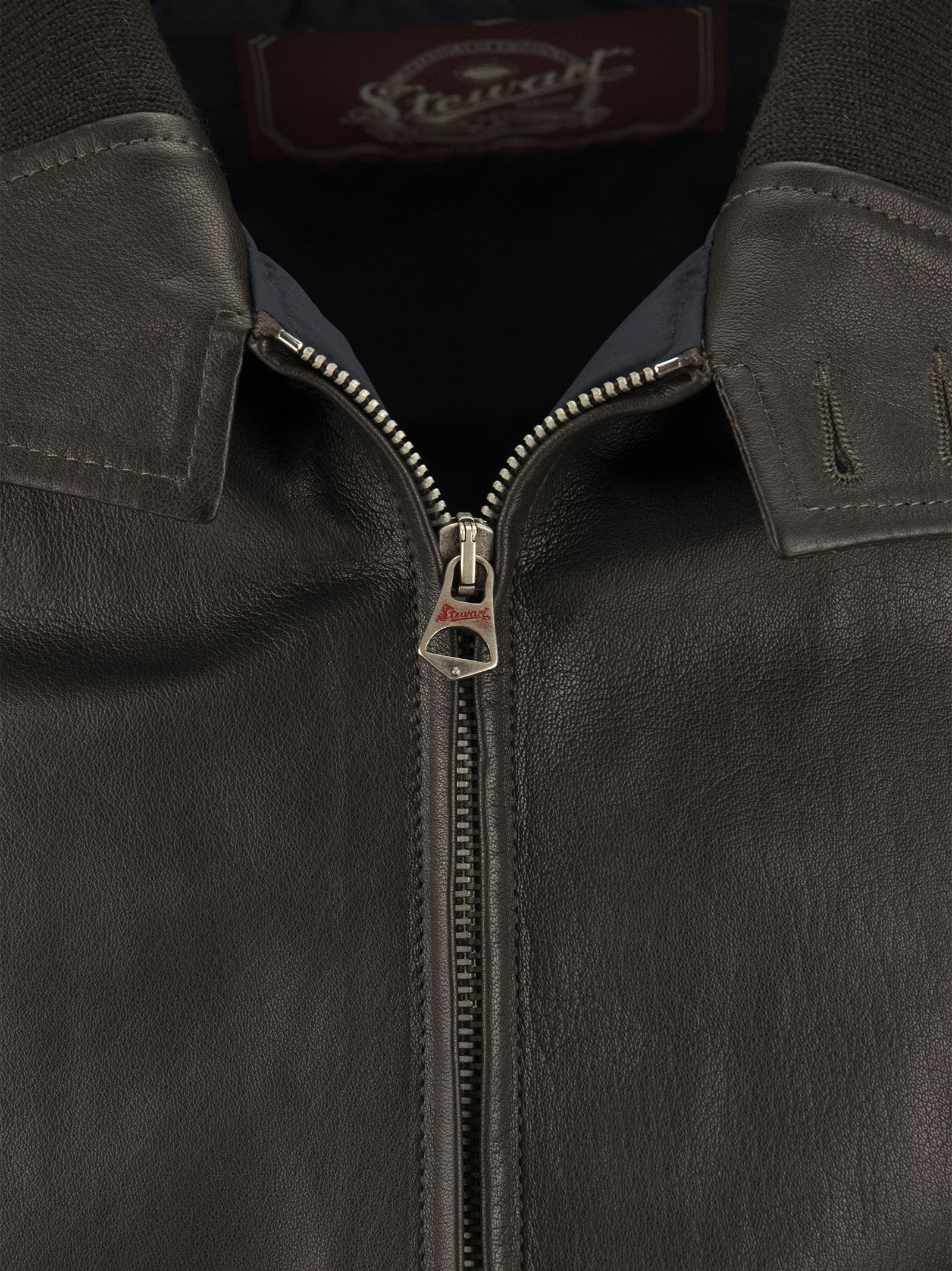 A Stewart classic, the new Colorado jacket is perfect for cold winter days with down filling. The garment features a double-slider zip fastening, a knitted stand-up collar and two button fastening, two welt side pockets, and knitted bottom hem and cuffs. - Regular fit - Genuine leather DESIGNER ID: GTDU180SPNCOLZF00070