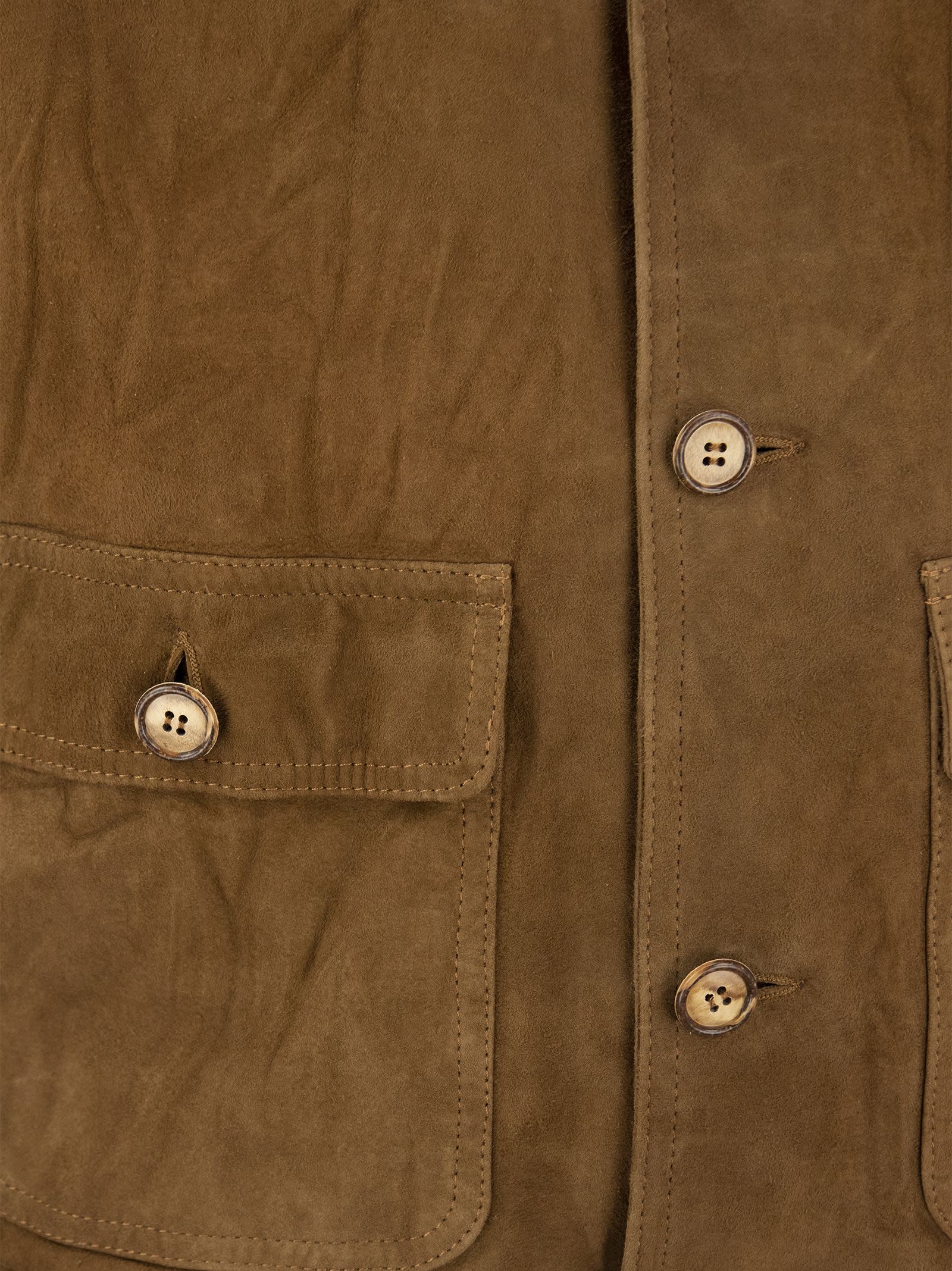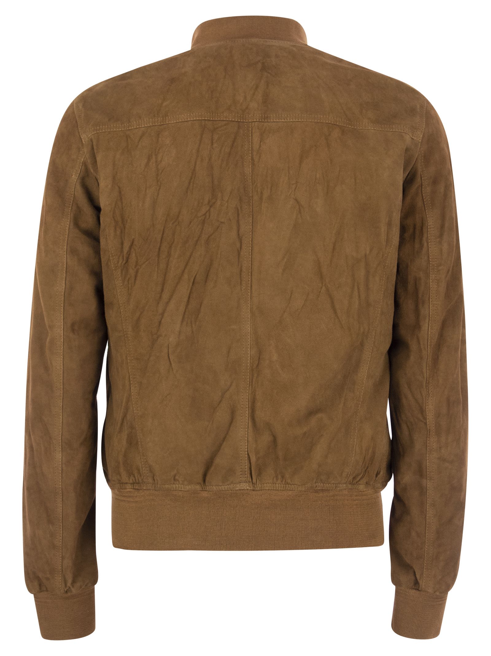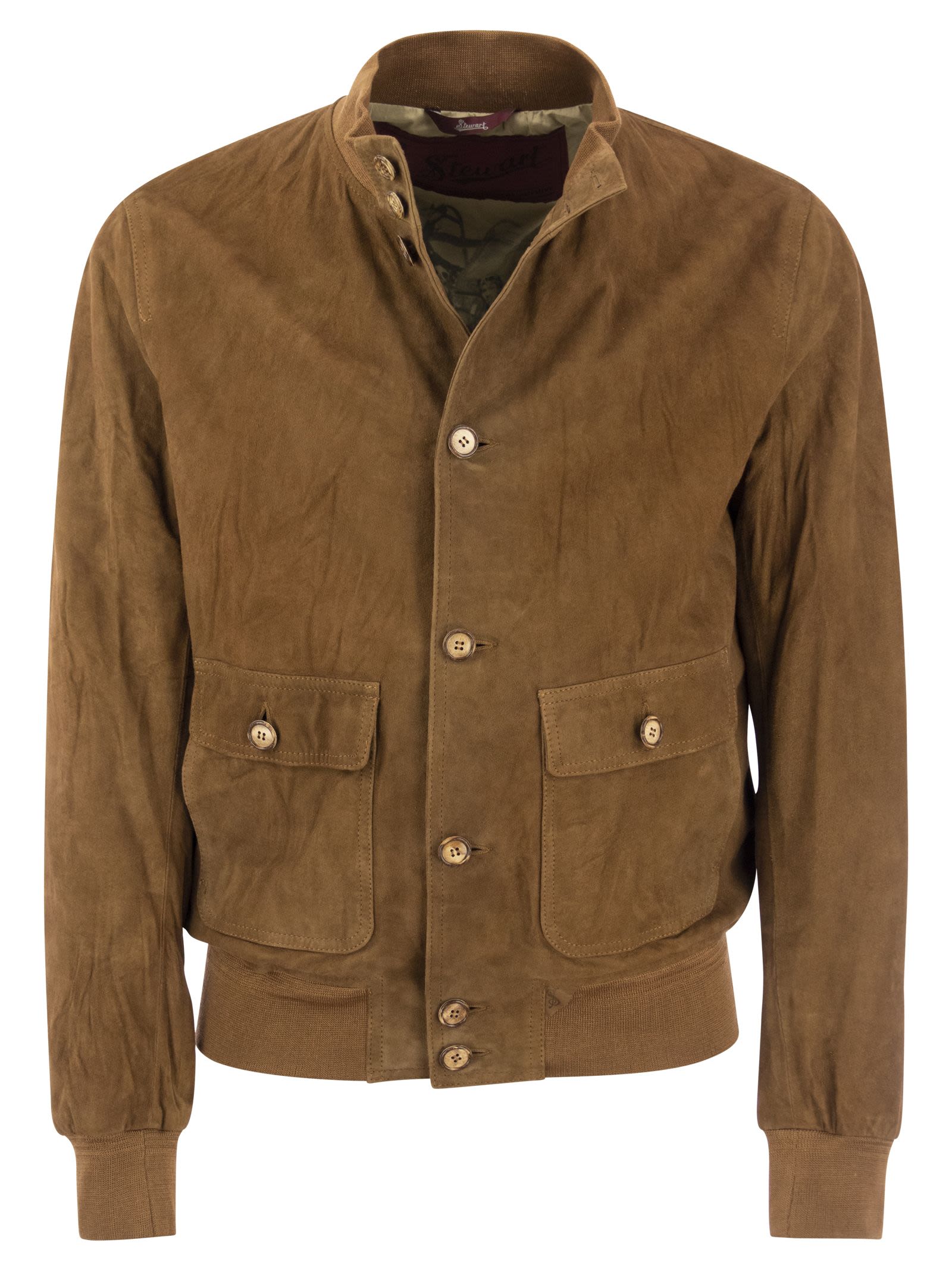 A basic and practical jacket with a soft and comfortable fit made in Italy of genuine suede leather. It is lined and features a button fastening and knitted cuffs and hem. - Low front patch pockets with buttons - Button fastening - Knitted bottom and cuffs DESIGNER ID: GUOU195S2155WZF00077