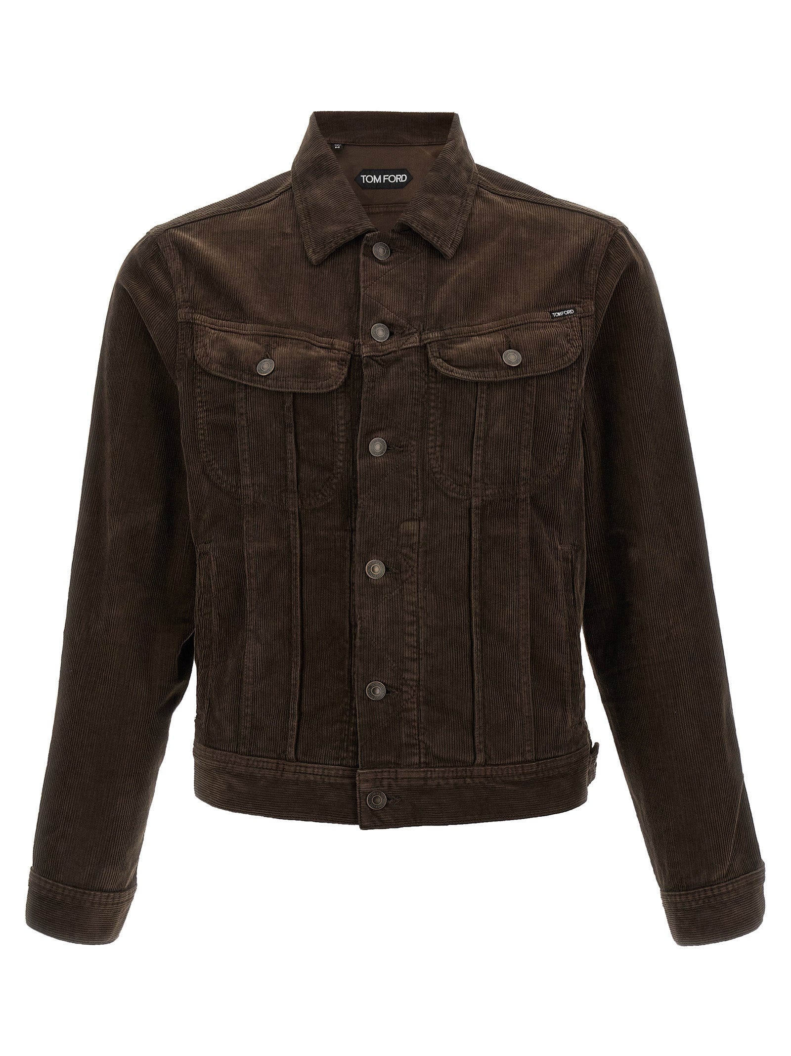 '12 Waves Cord Icon' corduroy jacket with collar, front button closure, pockets, unlined, long cuffed sleeves, back suede logo tag.