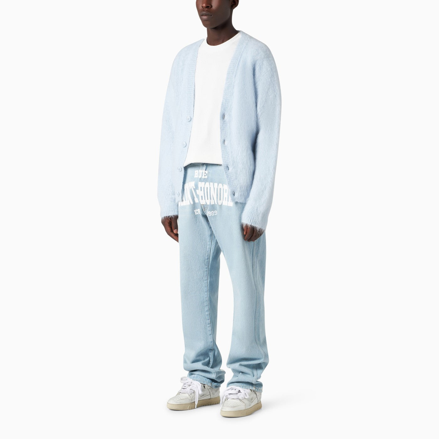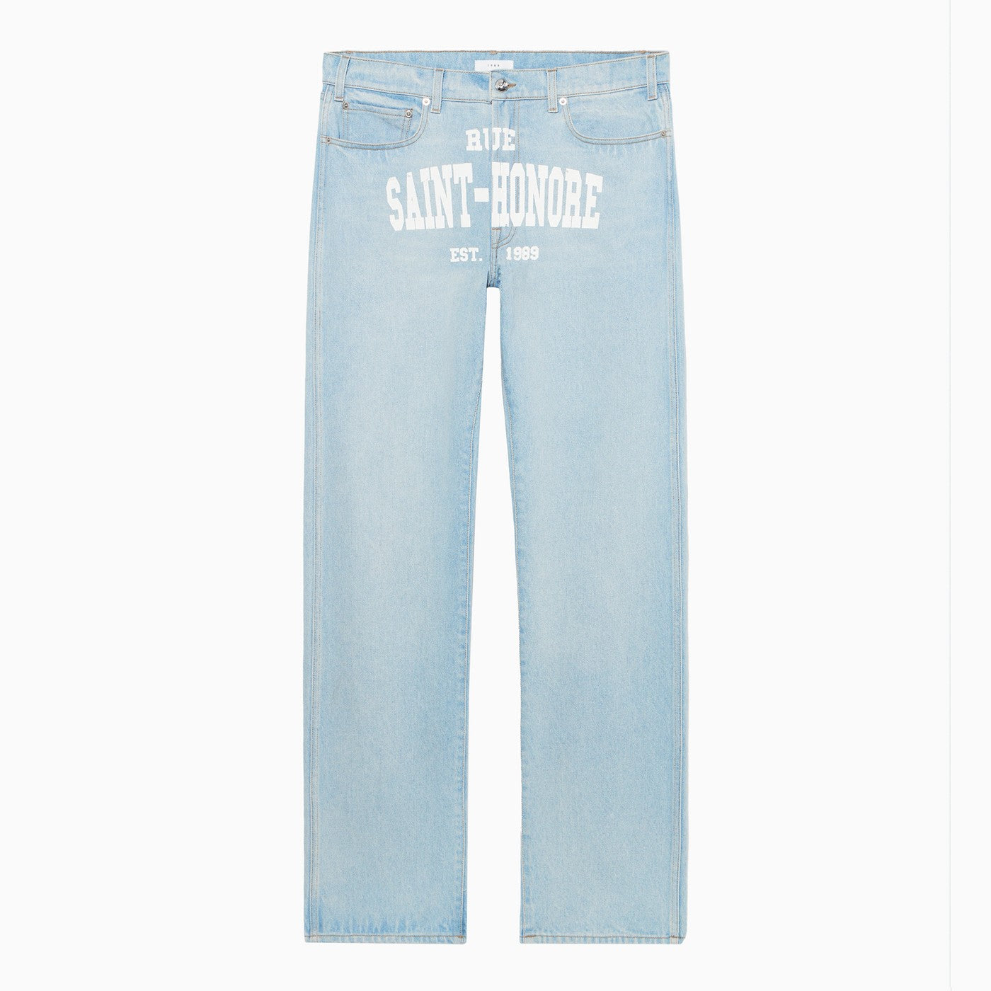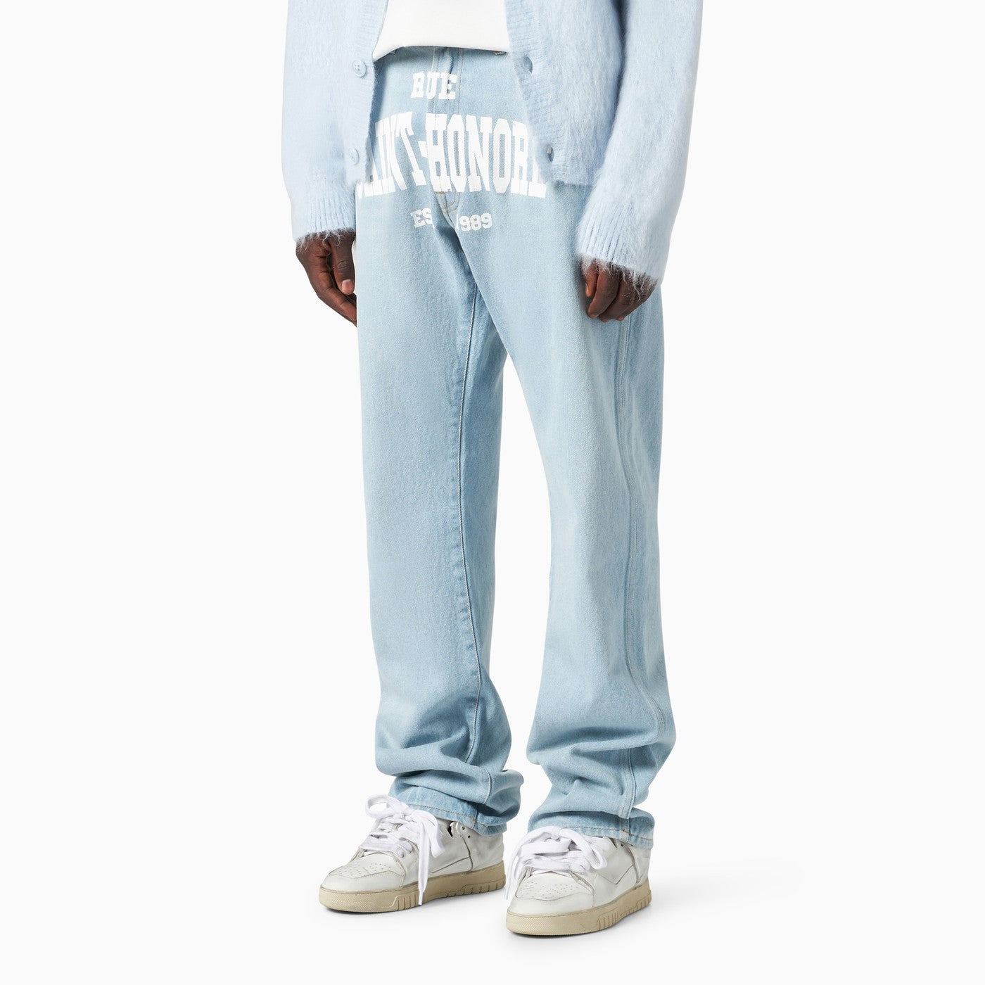 Straight-leg cotton jeans by 1989 Studio defined by a five pocket design and Saint Honoré print at front.