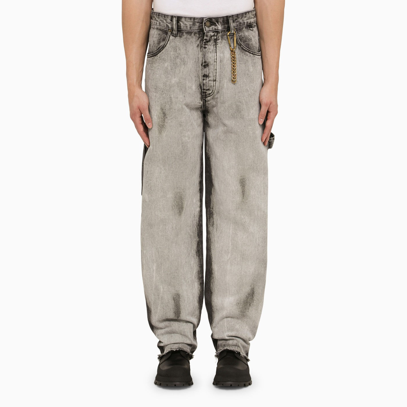 Jeans by Darkpark in hand-bleached Off White/black cotton denim, featuring a high waist, belt loops, a zip and button fastening, five pockets, detachable keychain and relaxed fit.
