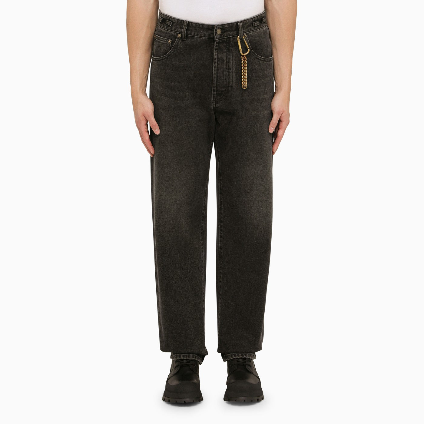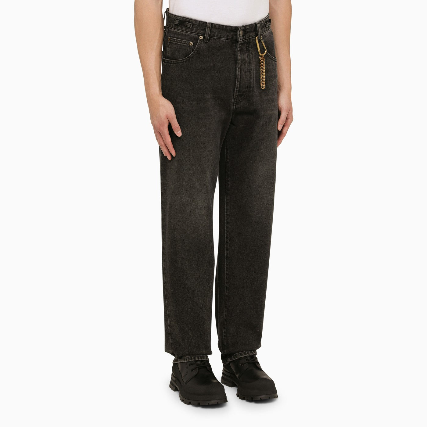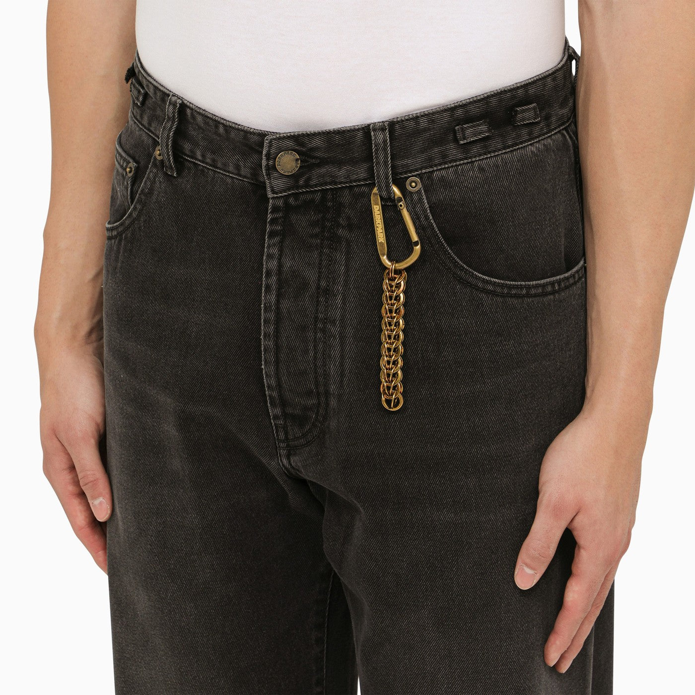 Jeans by Darkpark in hand-bleached Off White/black cotton denim, featuring a high waist, belt loops, a zip and button fastening, five pockets, detachable keychain, rear logo label patch and relaxed fit.