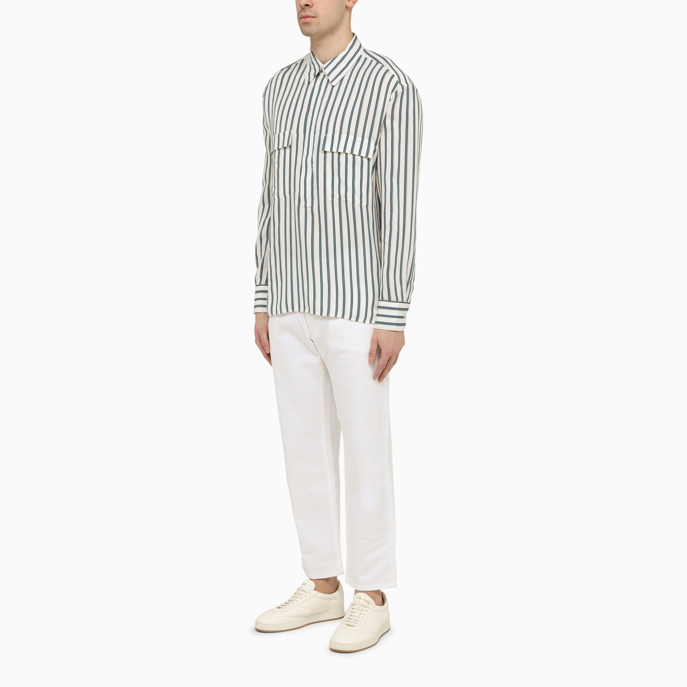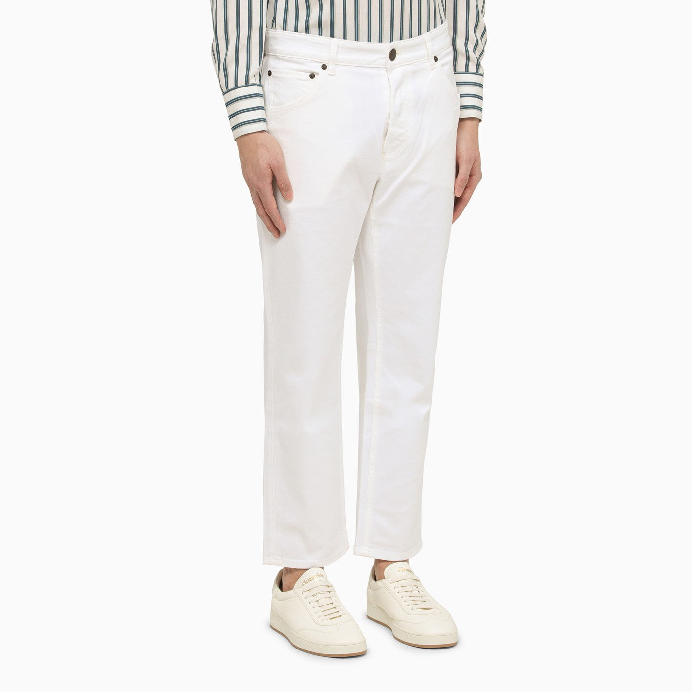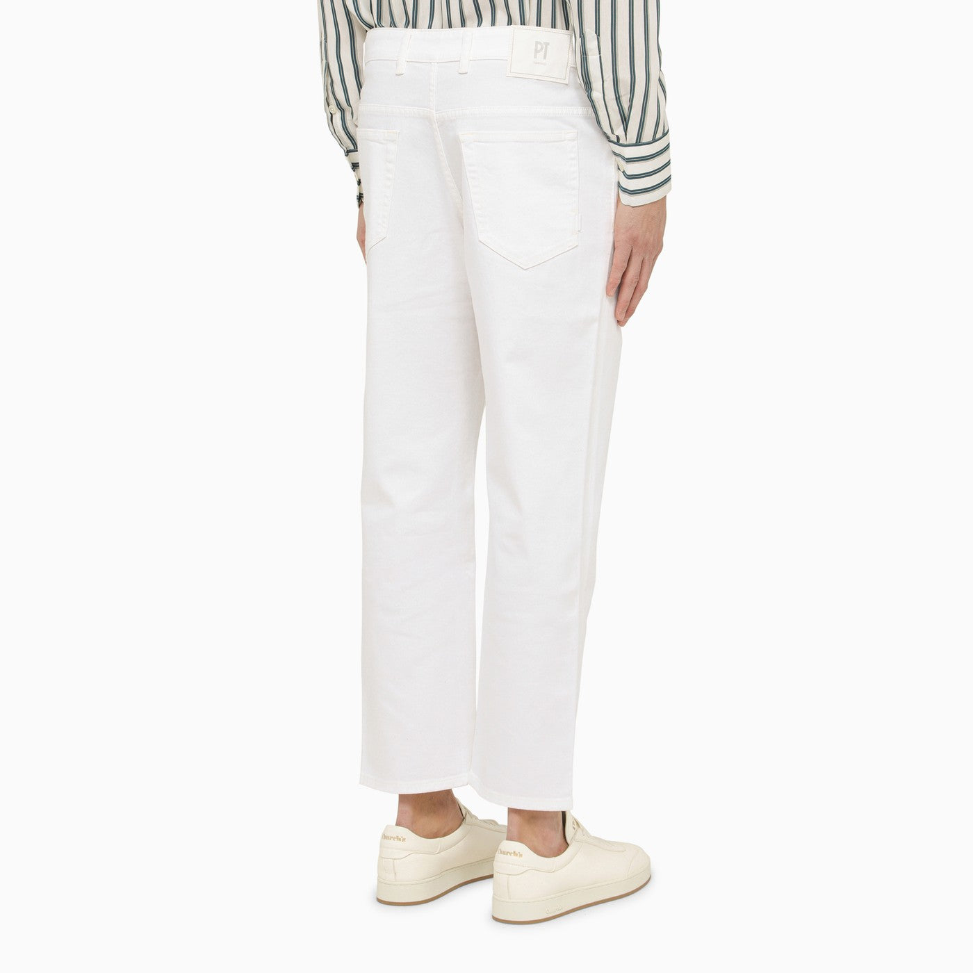 White cotton PT Torino trousers featuring front zip and button fastening, belt loops, five classic pockets and back logo patch.