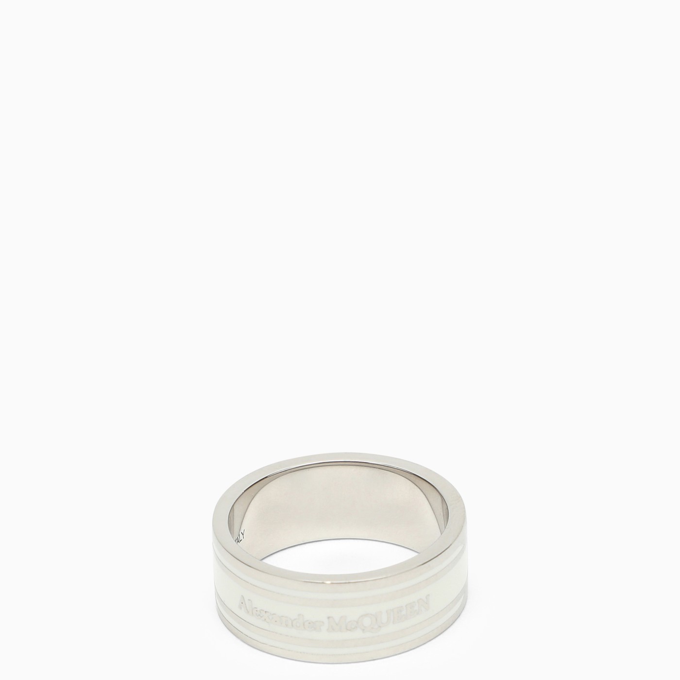 Ring by Alexander McQueen in ivory-coloured brass, featuring an engraved logo.