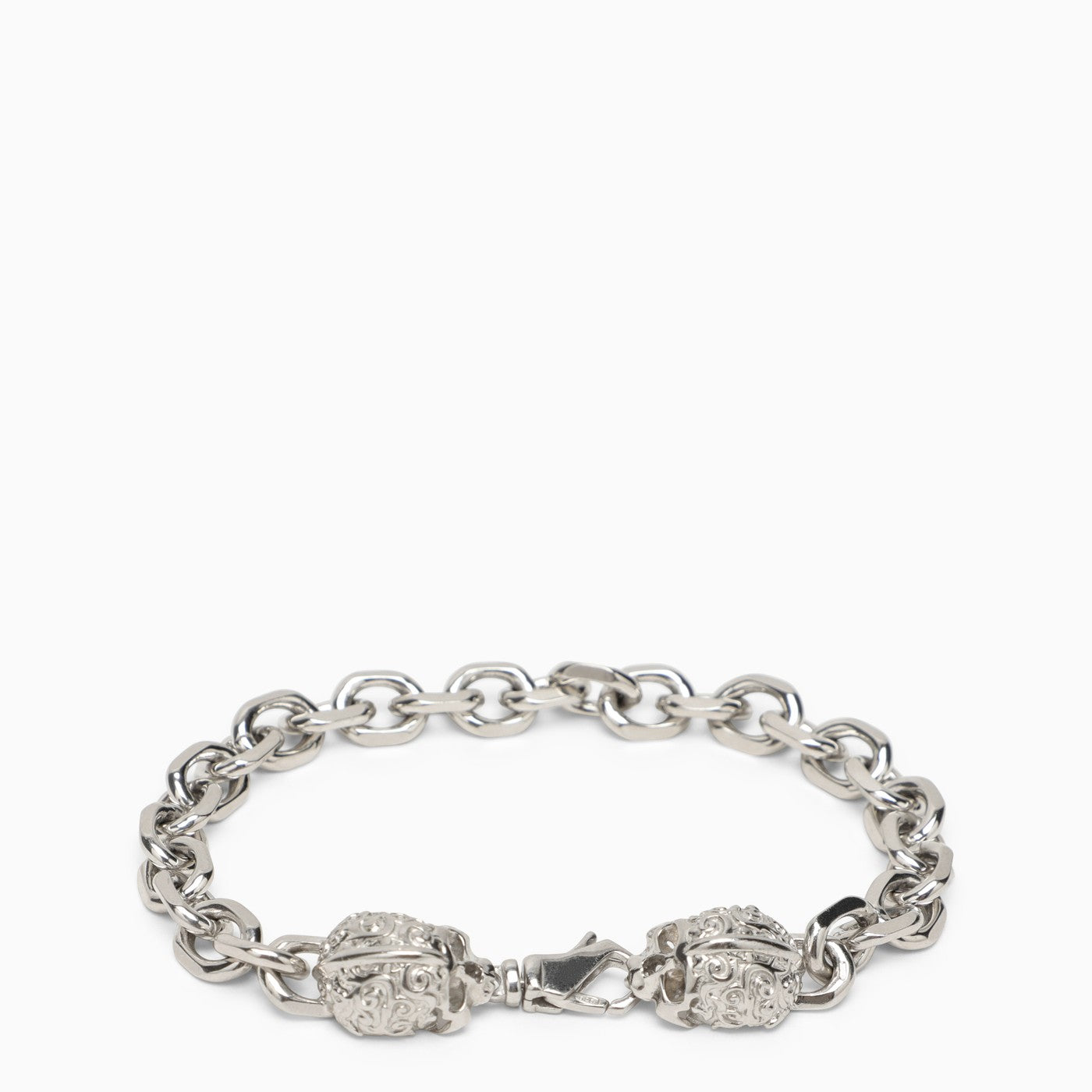 Chain bracelet in sterling silver by Emanuele Bicocchi, featuring a skull clasp with chiselled arabesques across the surface and a lobster clasp. The product is handmade and may vary slightly from the image. Emanuele Bicocchi jewellery is made in 925 untreated and burnished silver, which gives it an antique look. The plating may fade over time, therefore it is advised to not expose the jewellery to corrosive/aggressive agents.