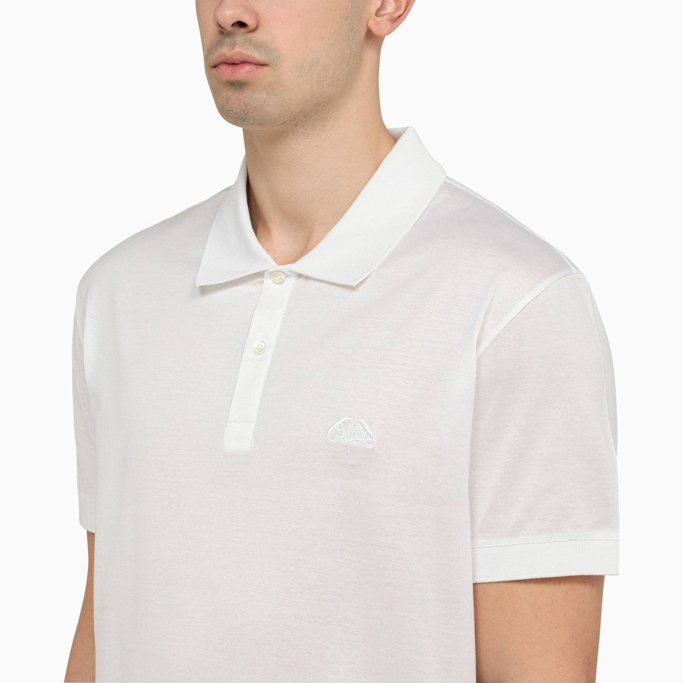 White cotton short-sleeved polo shirt by Alexander McQueen features a classic collar and iconic tone-on-tone chest detail.