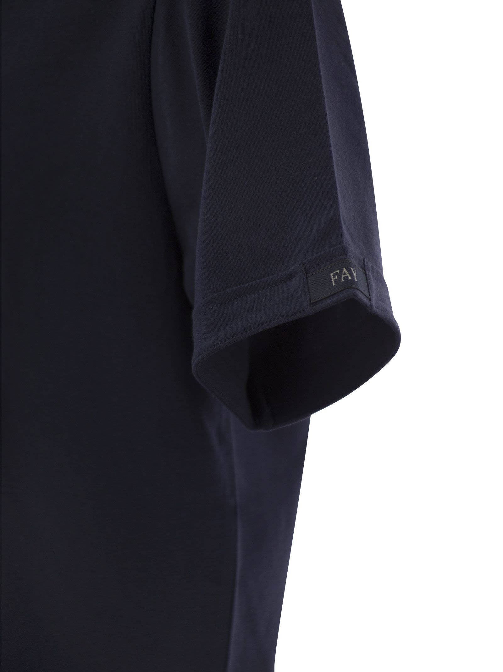 Short-sleeved crew-neck T-shirt in cotton mélange jersey, with Fay label applied to the sleeve. An essential with a refined sporty taste. - Fitting: regular DESIGNER ID: NPMB3481330UCXU806