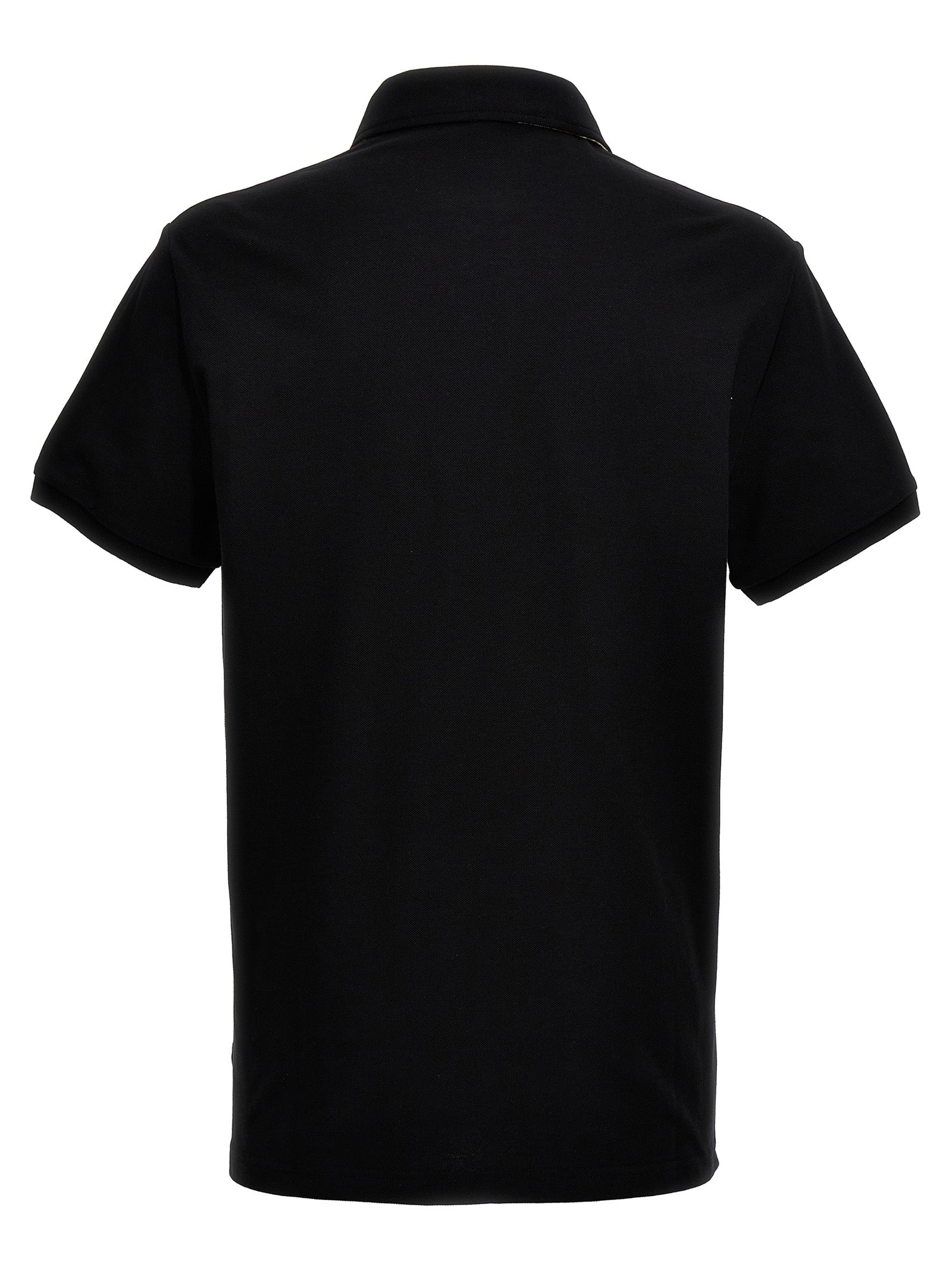 Piqué cotton polo shirt with front embroidered logo, short sleeves, and contrasting print on the back of the collar.