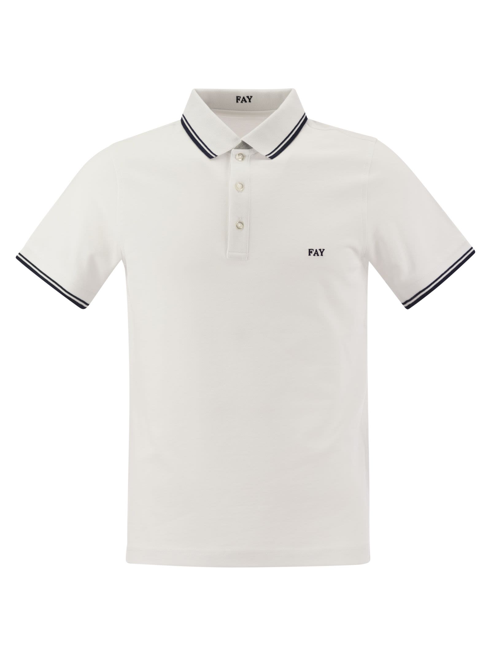Short-sleeve slim fit polo shirt in stretch piquet, with contrasting piping. Characterized by a collar with double construction, a refined reference to the brand's typical stylistic features, it is enriched by the Fay logo embroidered on the chest. - Fitting: slim DESIGNER ID: NPMB248140STDWB001