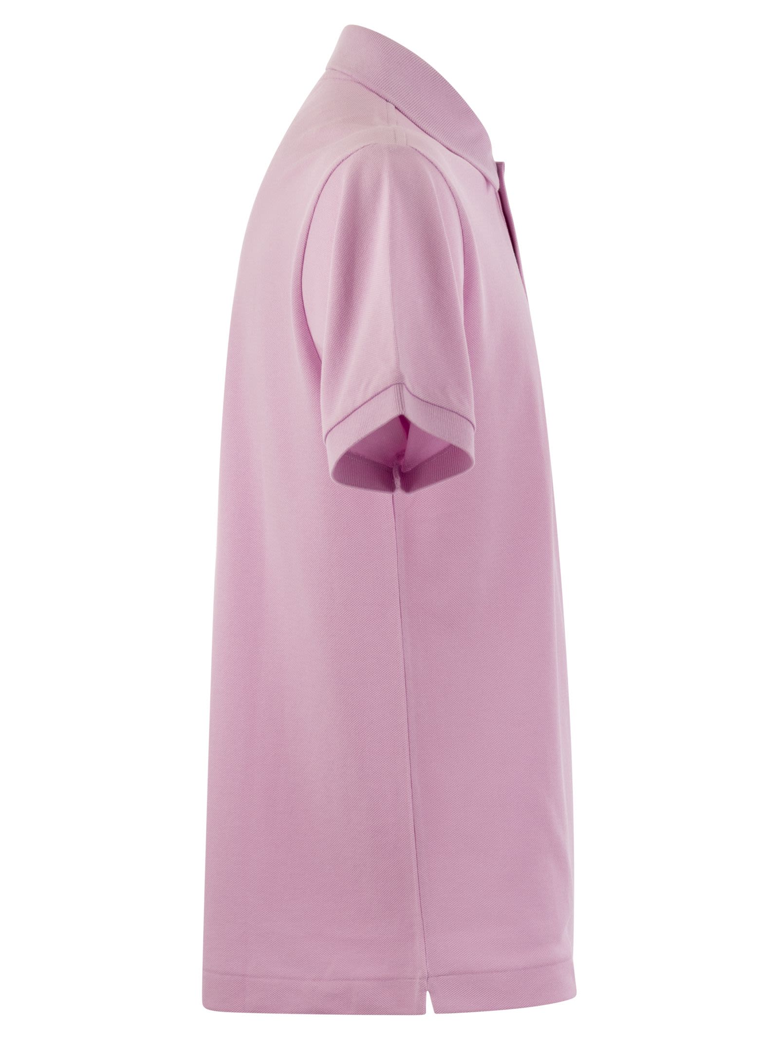 An embroidered crocodile on the chest adds an irreverent touch to the otherwise understated look of this Lacoste polo shirt. Made from plain cotton pique, it features a comfortable straight cut, a classic collar with two mother-of-pearl buttons and tone-on-tone ribbed trims. A Lacoste must-have. - Cotton pique - Ribbed polo collar with two mother-of-pearl buttons - Classic cut - Ribbed trim on sleeve ends - Green crocodile embroidered on the chest DESIGNER ID: 1212 IXV
