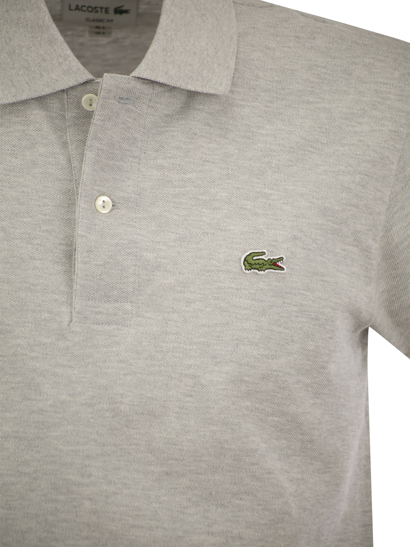 An essential piece of menswear, this Lacoste polo shirt in 100% cotton pique defines a comfortable and elegant look. The chiné knit fabric adds an elegant touch. - Ribbed edges on collar and sleeves - 2-button collar - Mother-of-pearl buttons - Classic cut - Mottled cotton petit pique - Classic fit DESIGNER ID: L1264 CCA