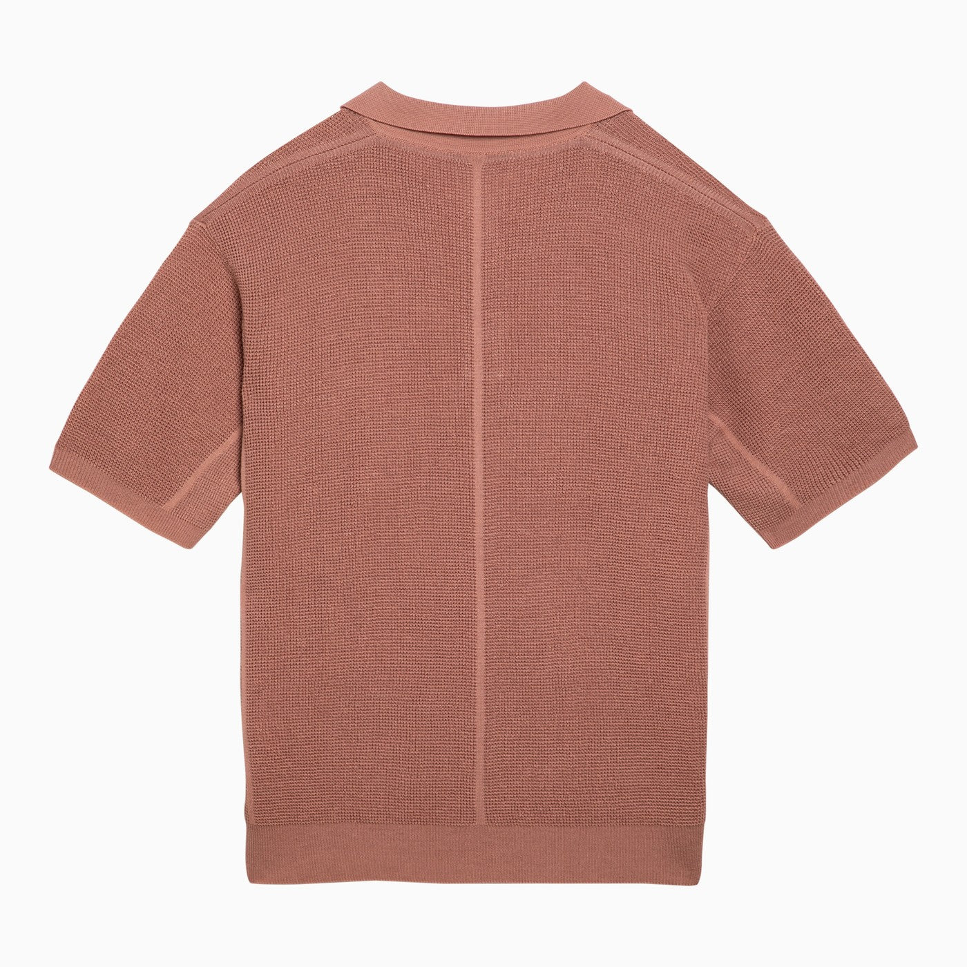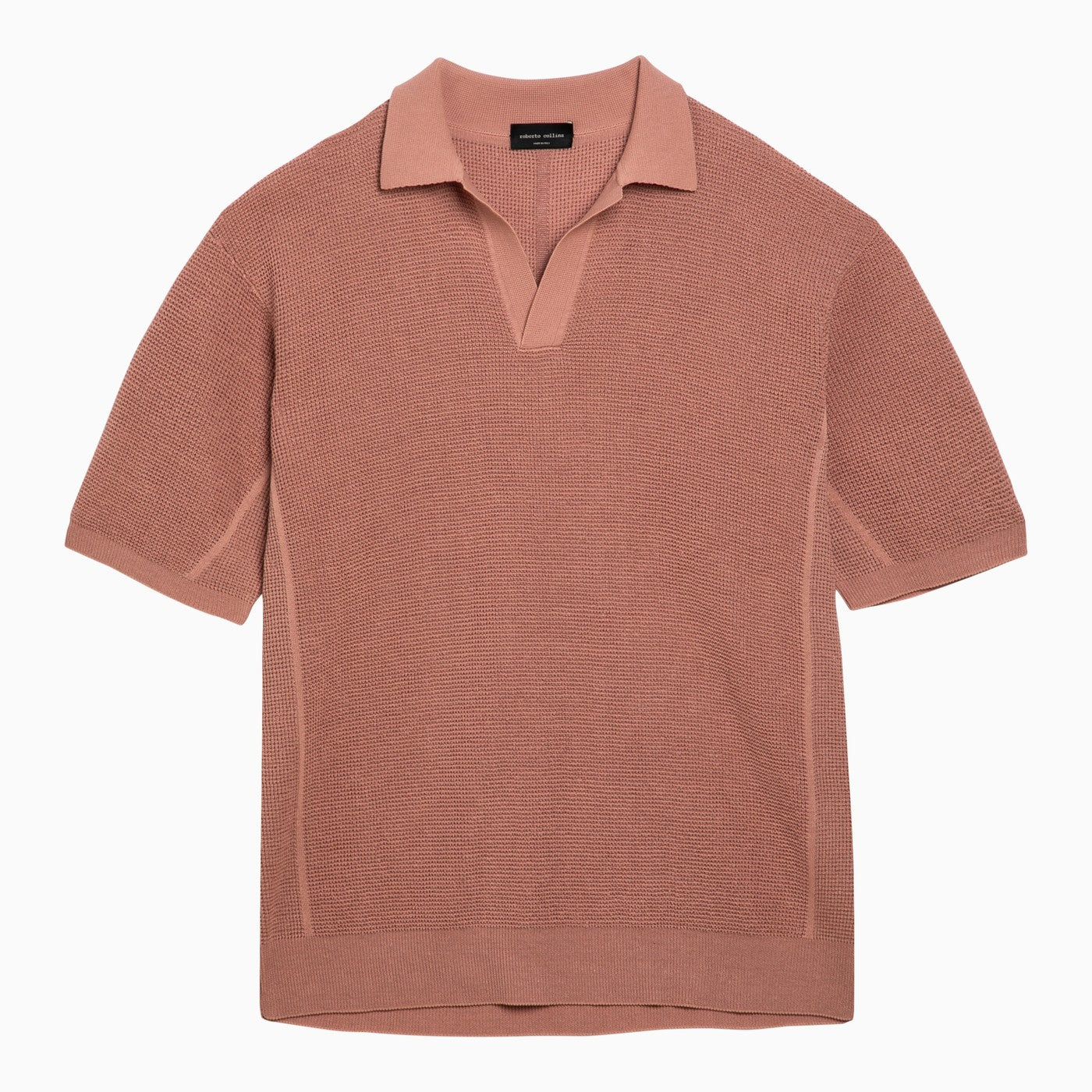 Polo shirt by Roberto Collina in pink linen and cotton knit, featuring short sleeves and ribbed hems.