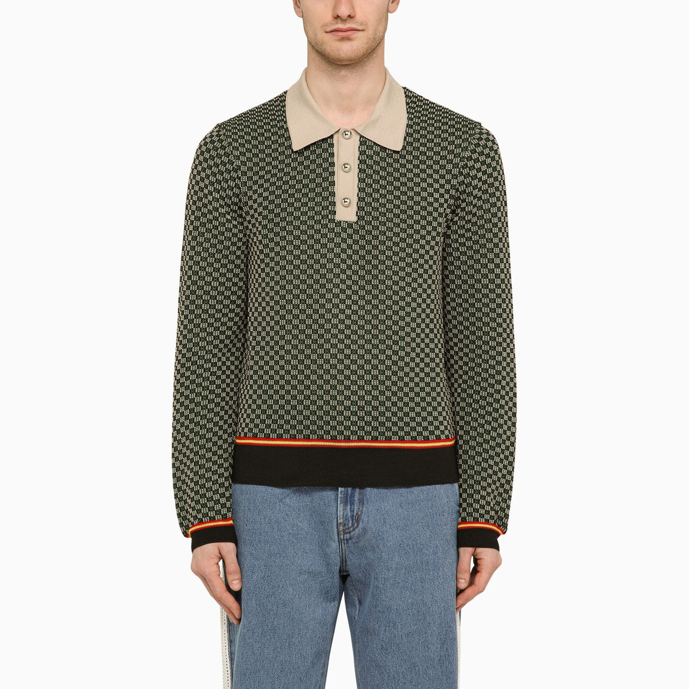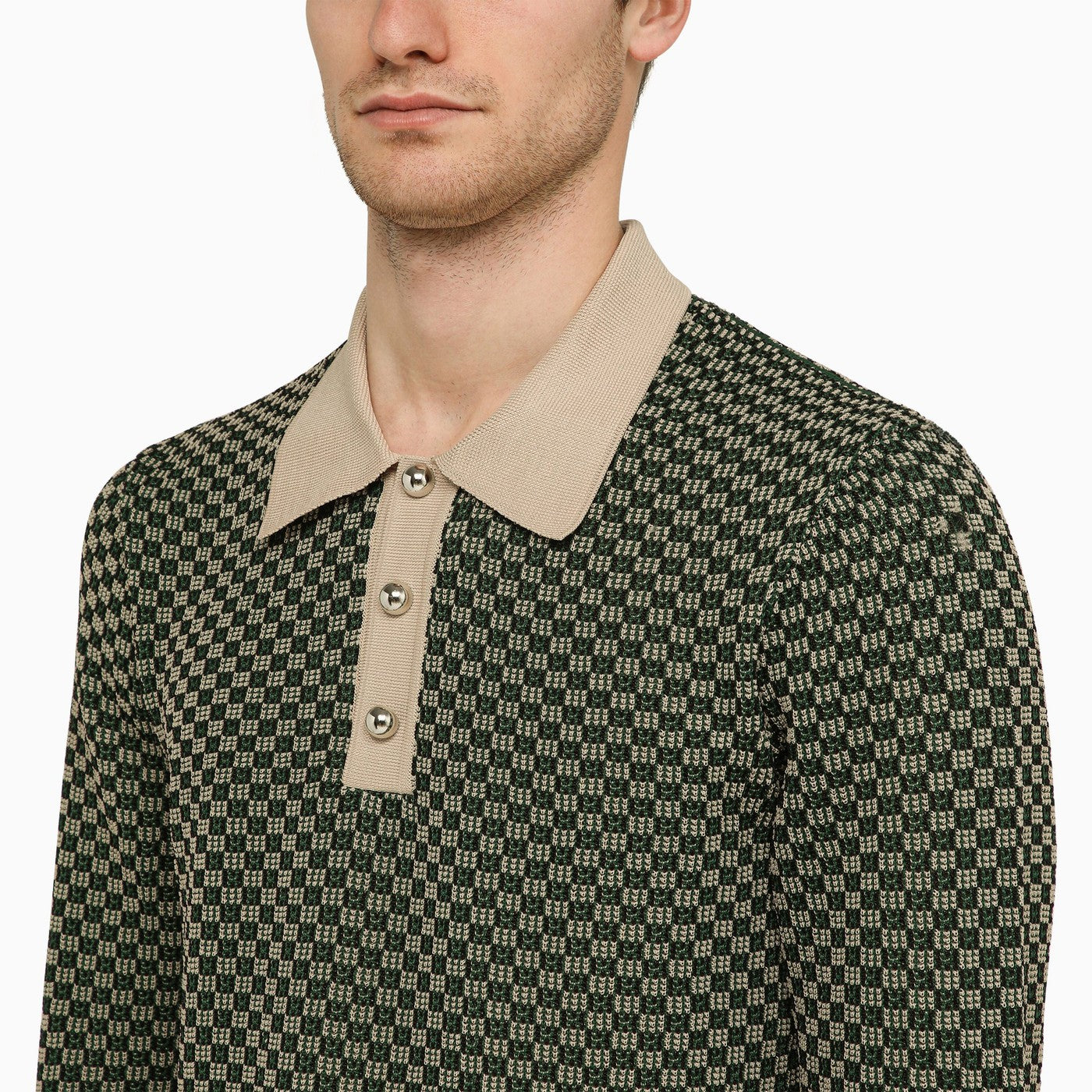 Wales Bonner Green/Beige Jacquard Long Sleeved Polo Shirt