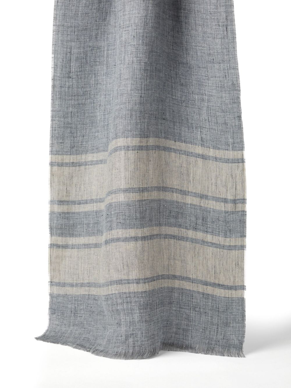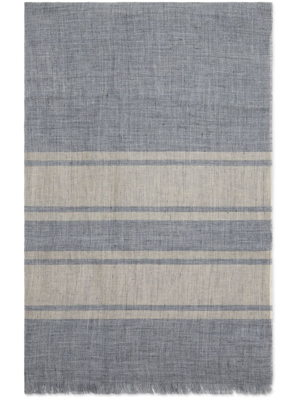 light grey/multicolour linen/flax knitted construction mélange effect stripe detailing frayed edge rectangle shape wraparound style This piece comes complete with a protective dust bag. This item contains at least 50% materials which are certified or widely recognised as having a lower environmental impact through production and/or manufacturing processes that reduce water consumption and the use of harmful chemicals, or re-use by-products of the production process. Learn more about what makes a product Conscious on our Conscious Criteria page