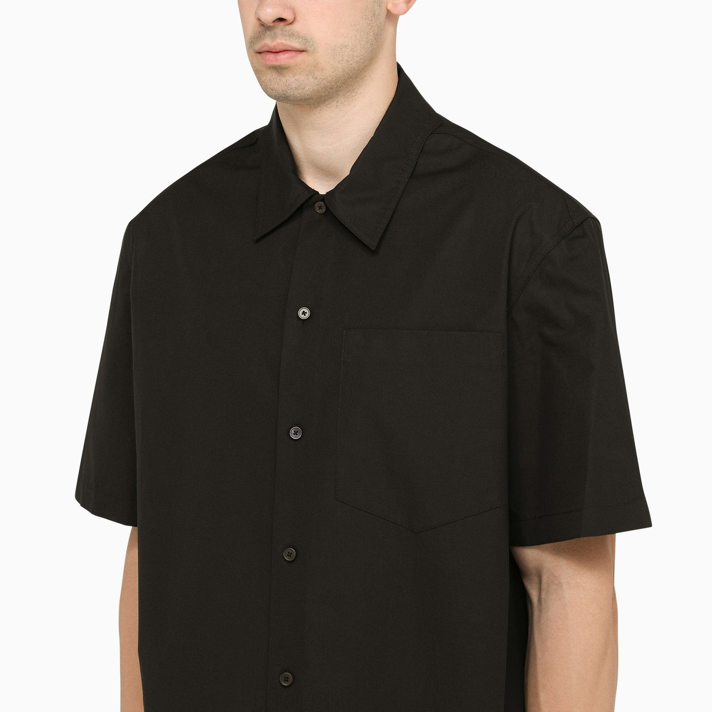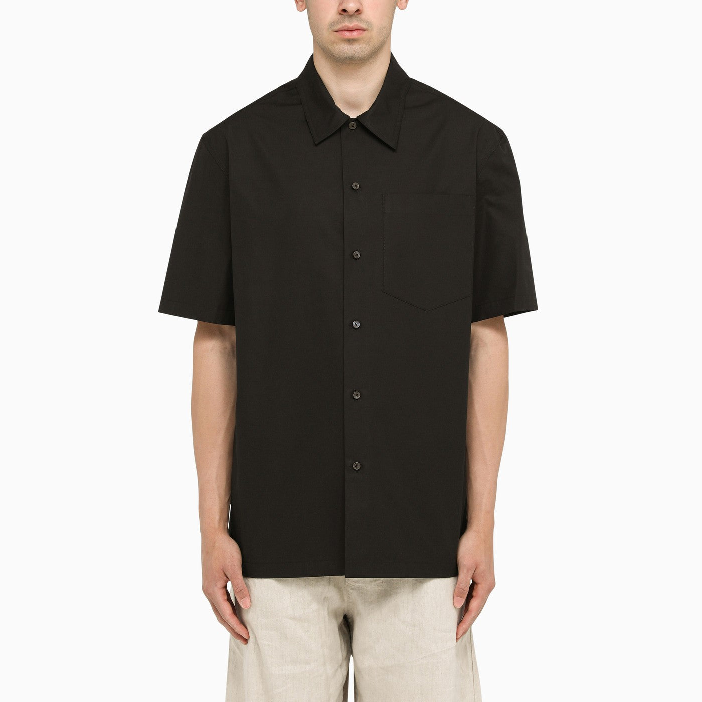 Black cotton regular shirt from Jil Sander featuring short sleeves, chest pocket and button fastening.