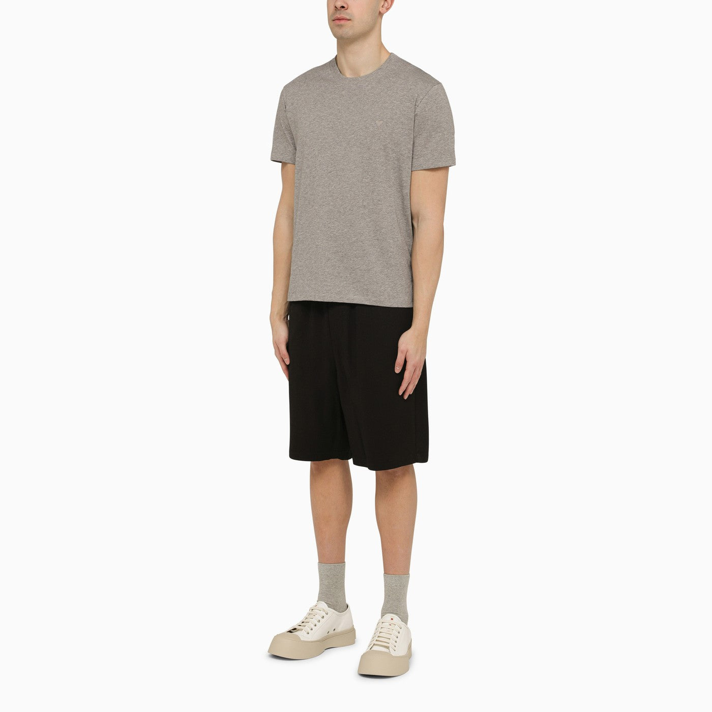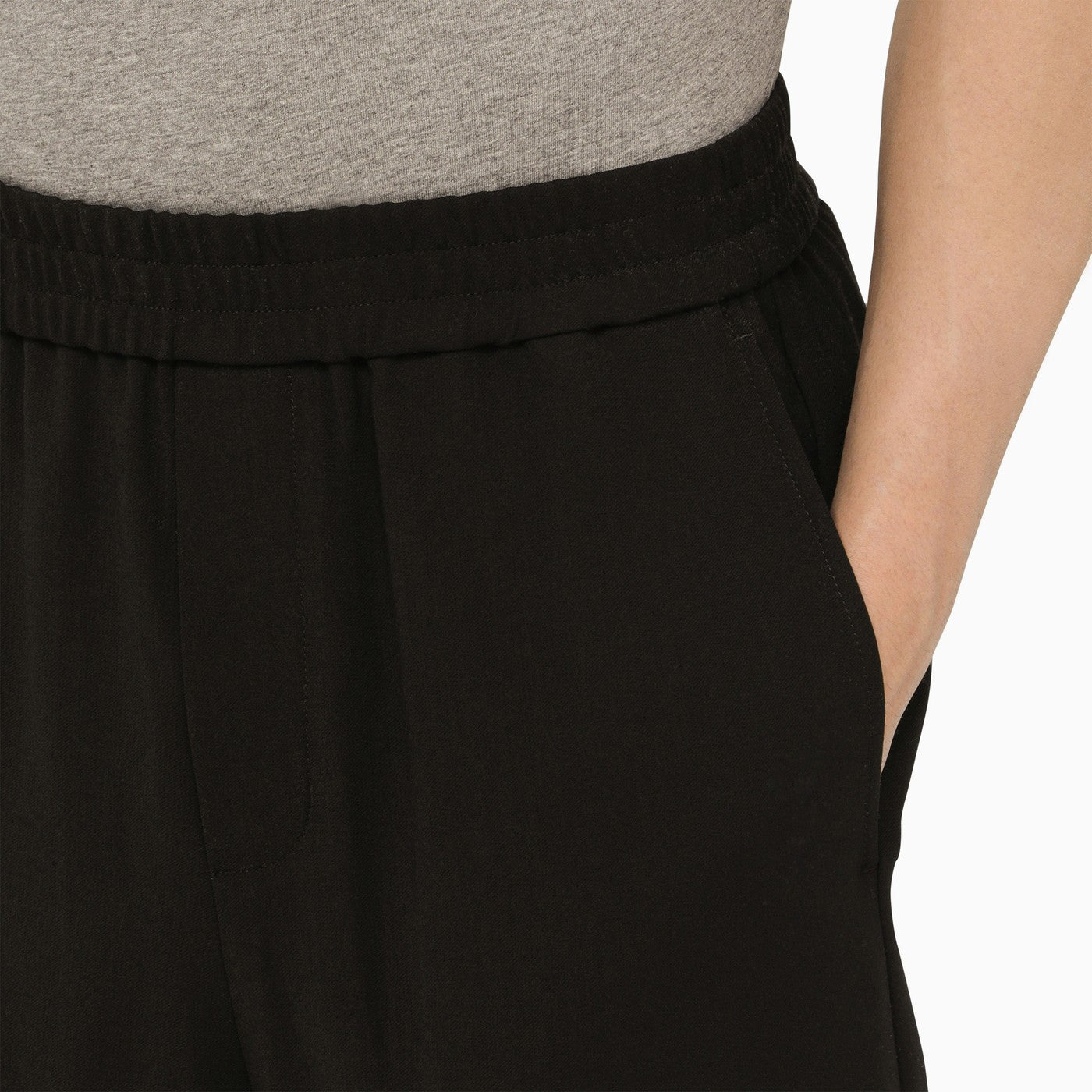Black wool-blend Bermuda shorts by Ami Paris, featuring an elasticated waistband, two side welt pockets and two back patch pockets with a metallic Ami de Coeur logo.