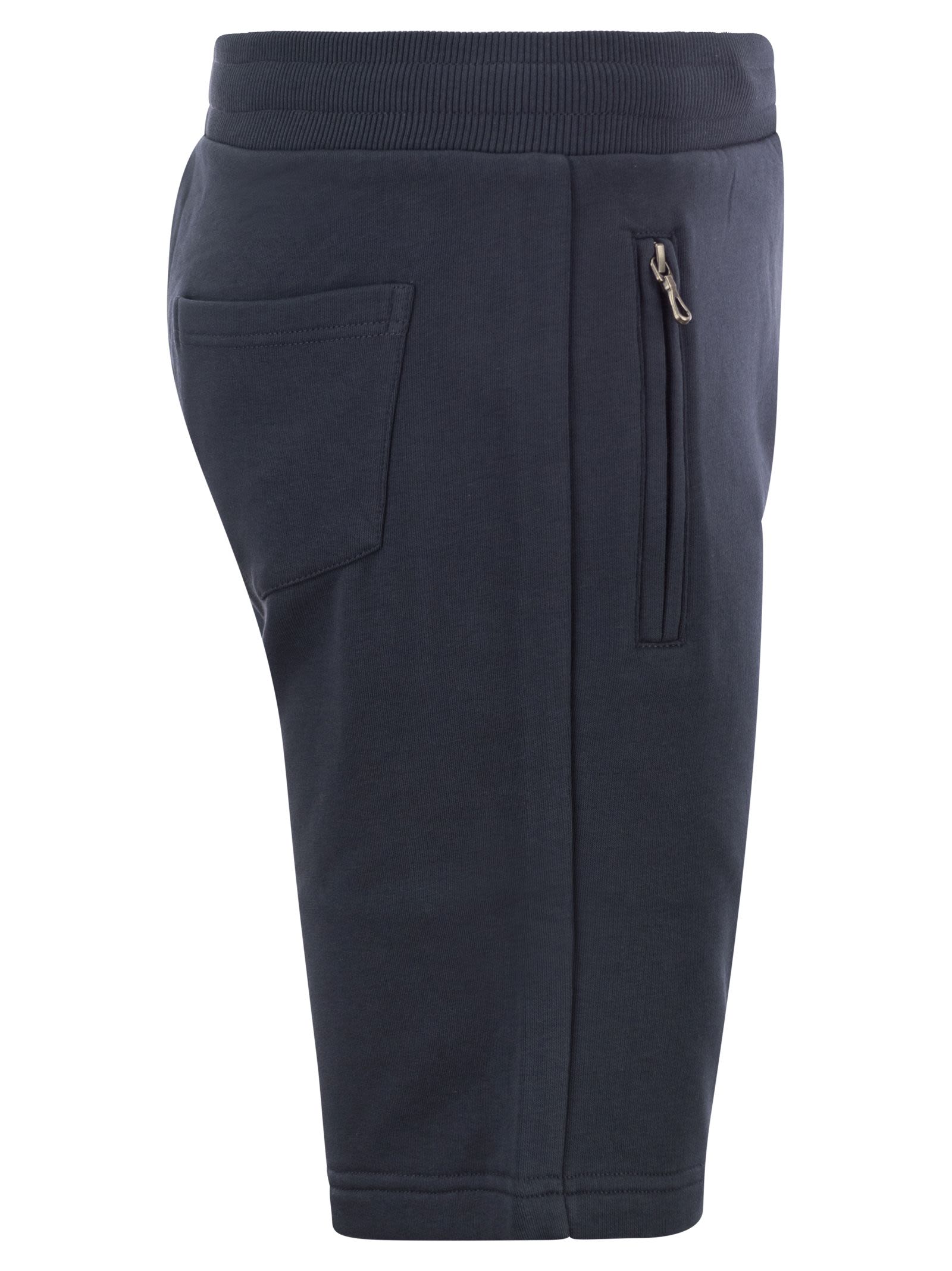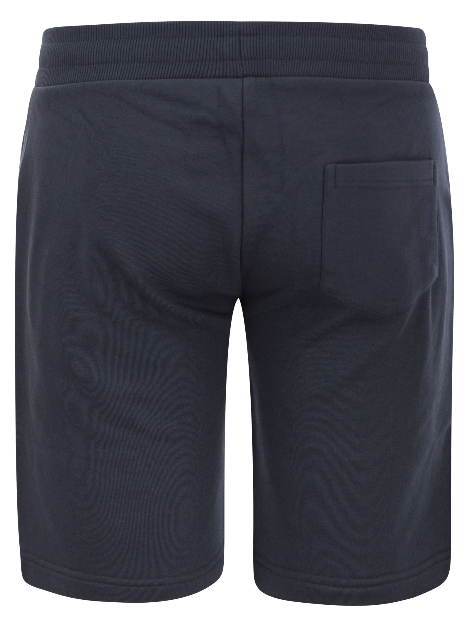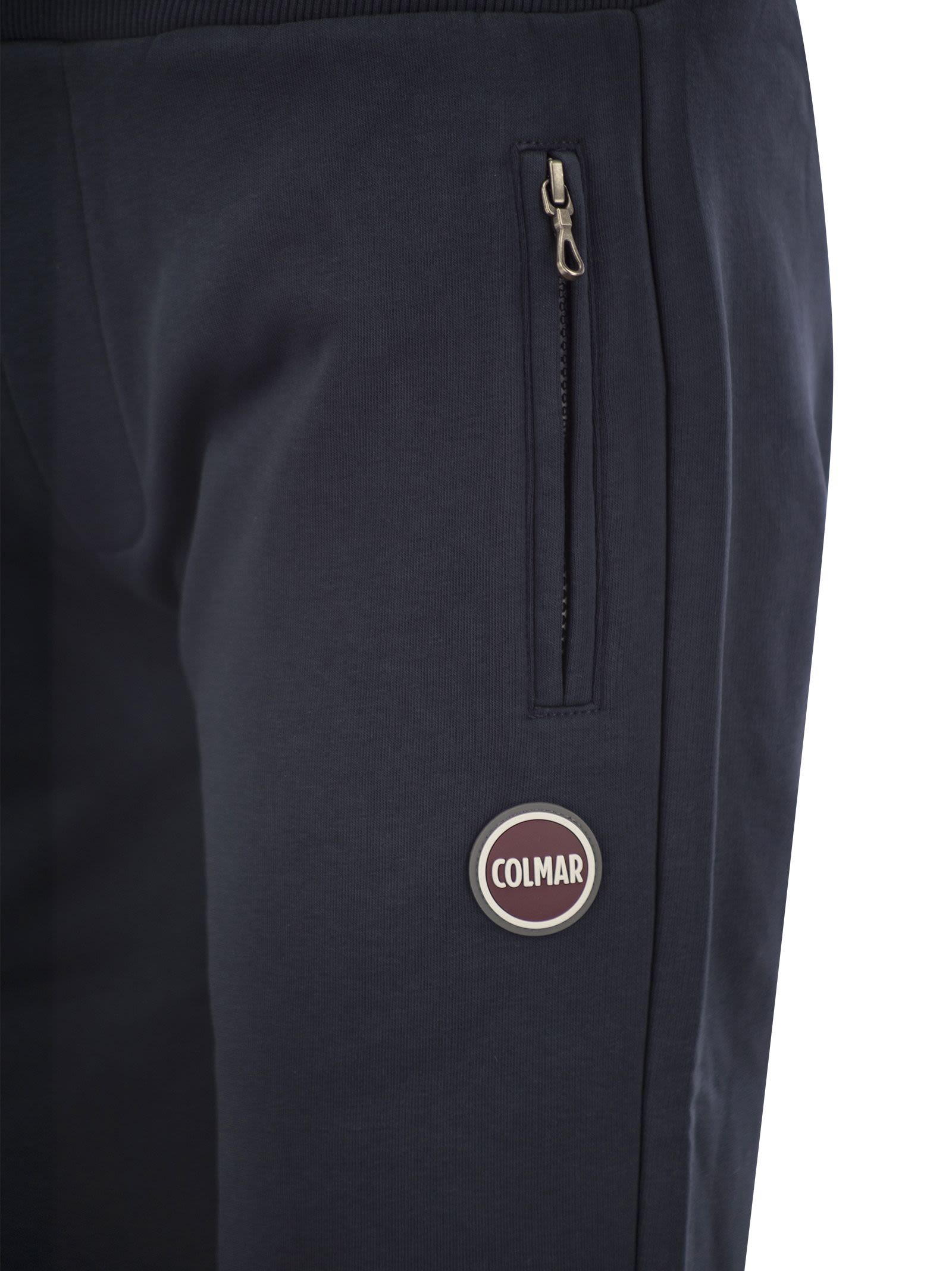 Men's short trousers in ungauzed cotton-blend fleece. The elasticated waistband allows the width to be adjusted. Practical side pockets and large rear patch pocket. A comfortable and versatile garment to create a total sporty look or to mix and match for a casual look. - Regular fit - Mid-season weight - Elasticated waist - Side pockets - Patch back pocket - Ribbed waistband - Colmar Originals logo applied on the left leg DESIGNER ID: 8275 5WS 68