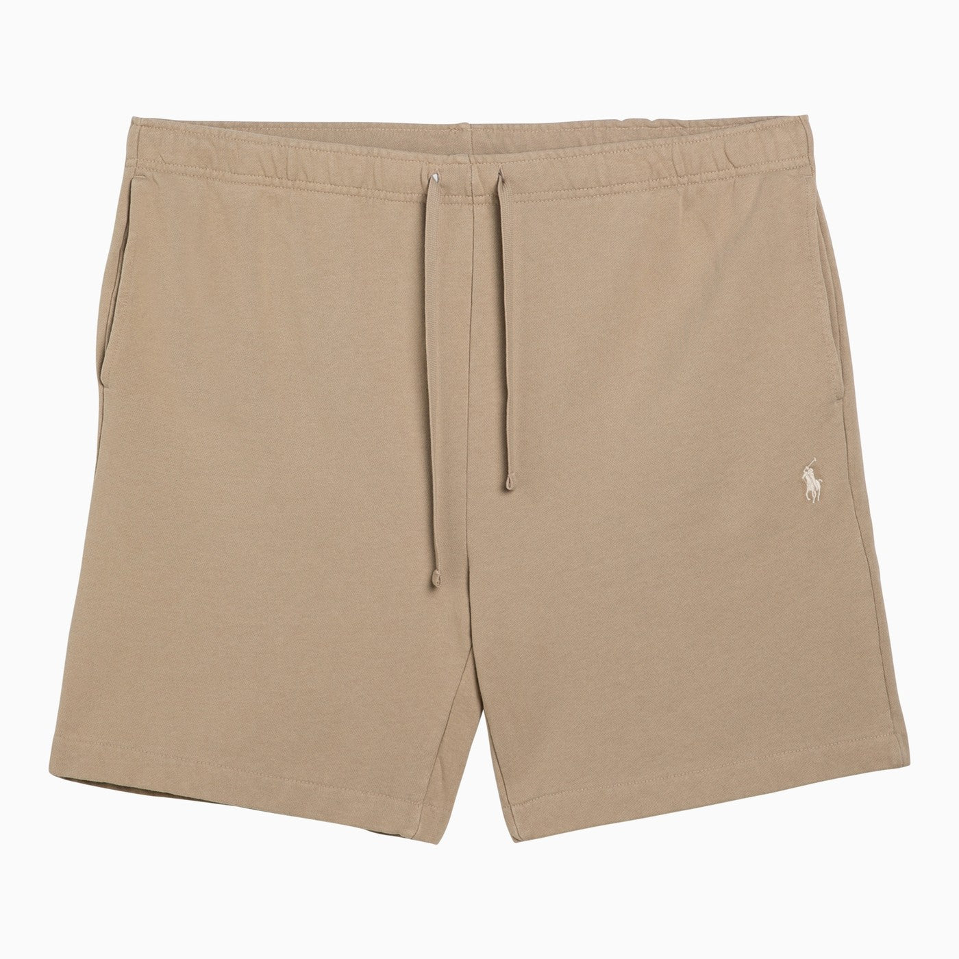 Bermuda shorts in beige cotton by Polo Ralph Lauren, featuring an elasticated waistband with drawstring, two side welt pockets, a patch pocket on the back and an embroidered logo on the front.