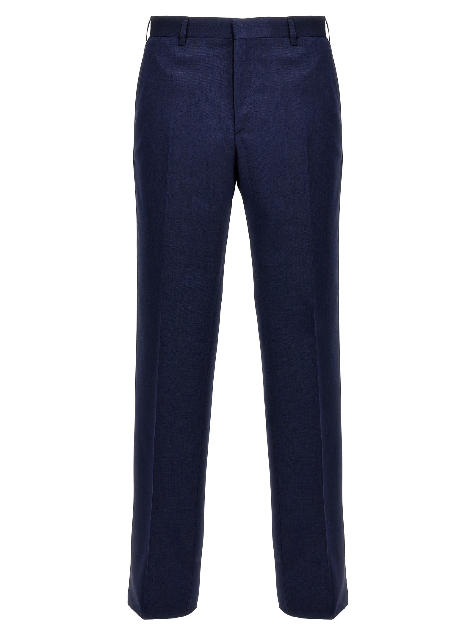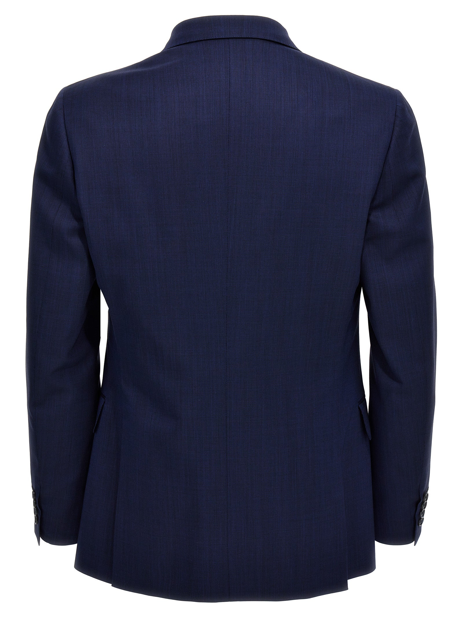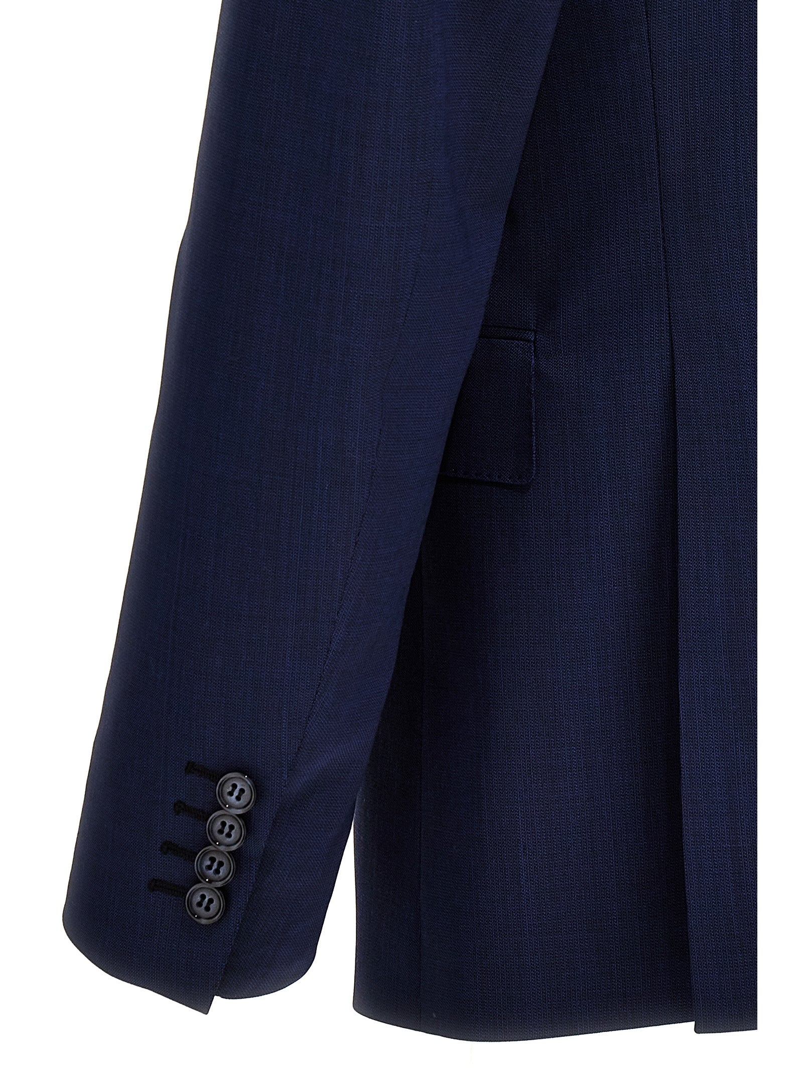 'Trevi' wool suit consisting of single-breasted blazer with peak lapels and padded shoulders, regular pants with straight leg.