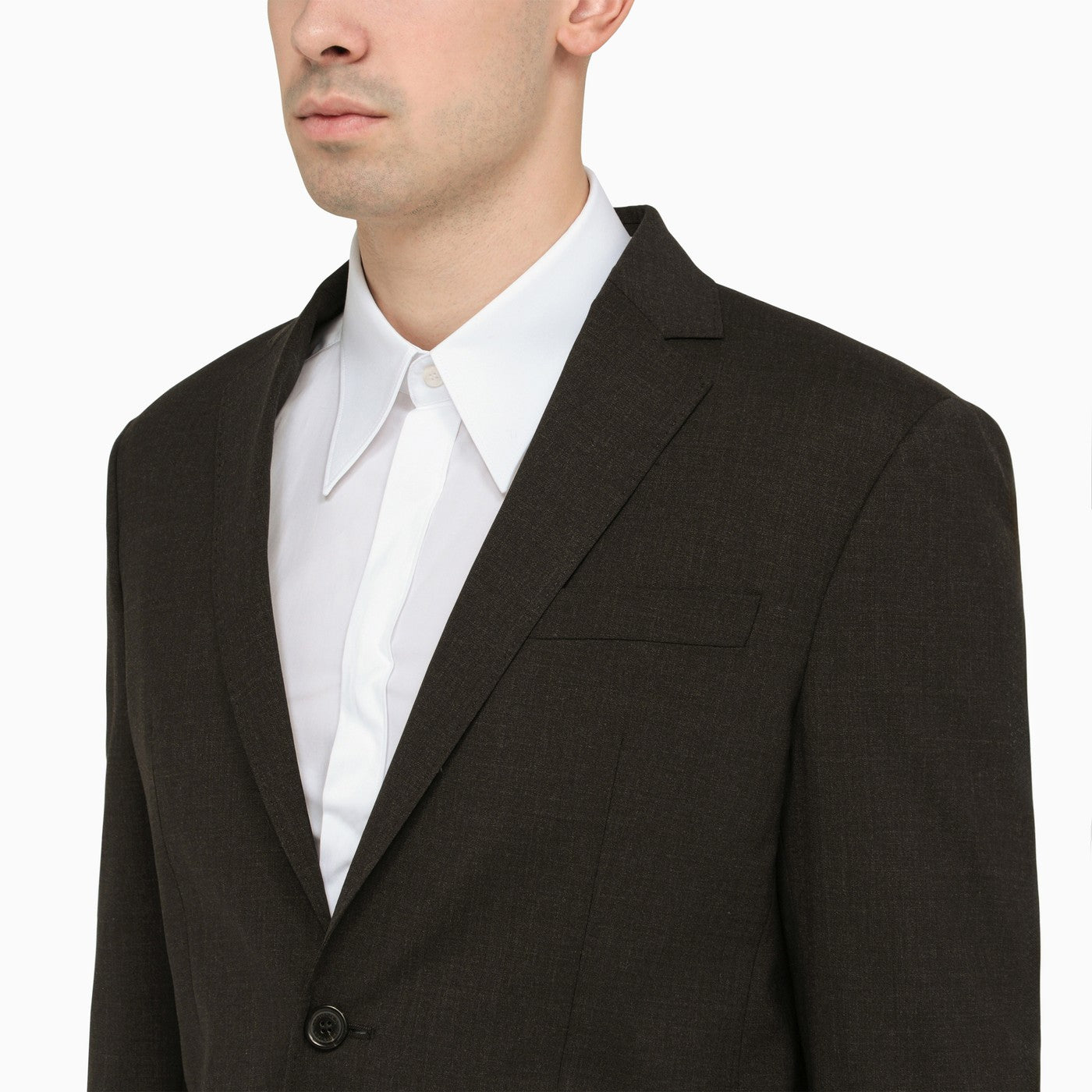 Grey wool single breasted suit from Dsquared2. Single-breasted model, featuring a front button fastening, long sleeves, buttoned cuffs, deep lapels, two front flap pockets, a welt pocket on the chest and grey wool trousers, featuring two welt pockets with a button on the back and belt loops at the waist.