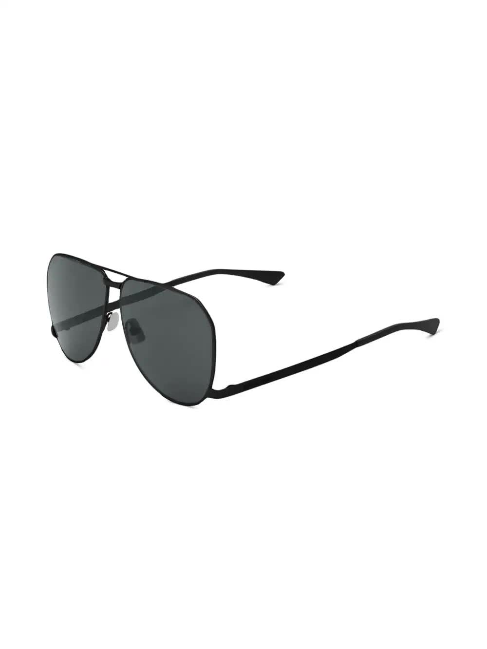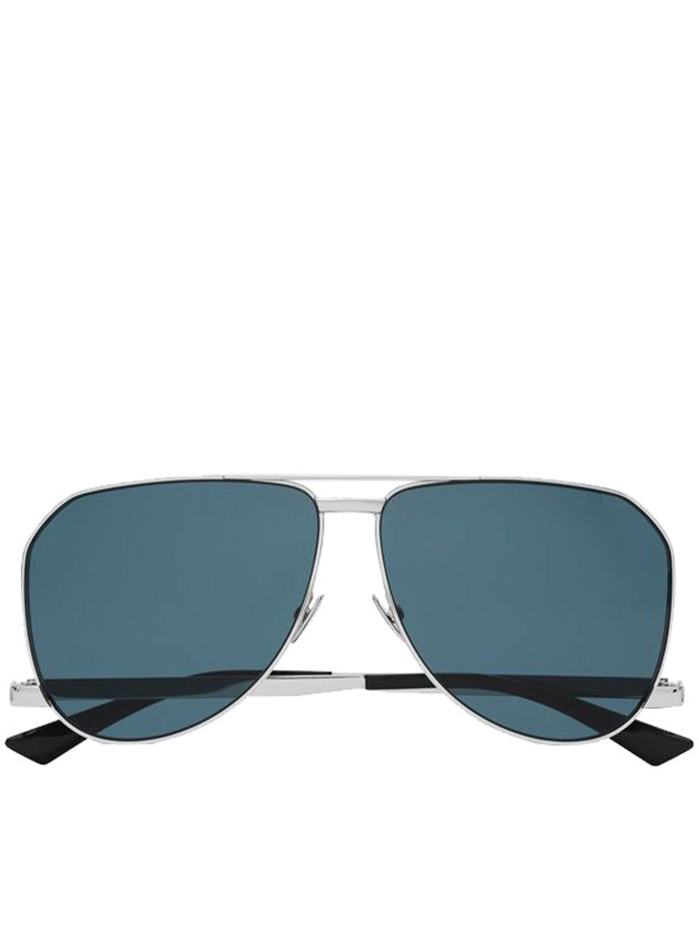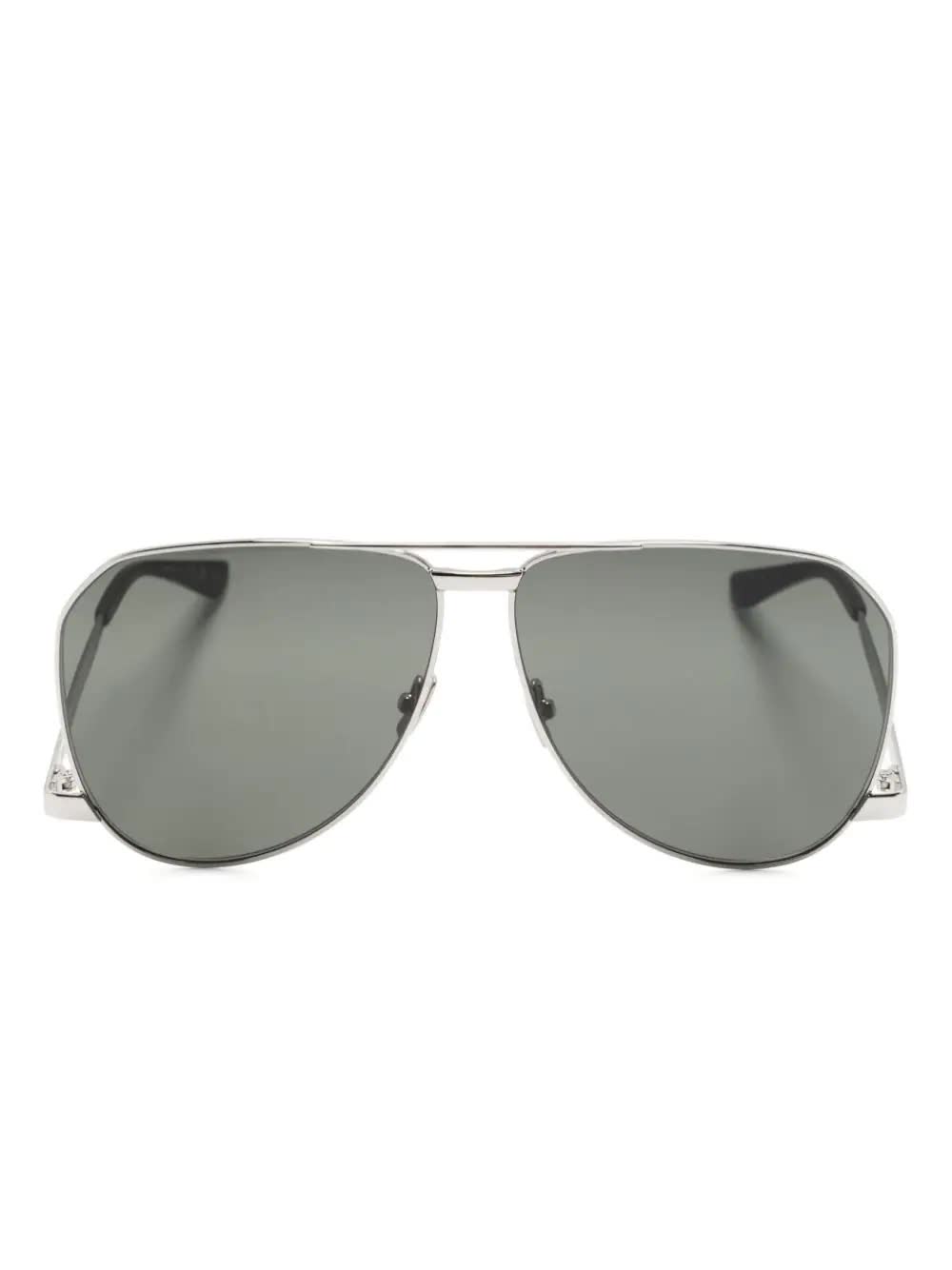 Saint Laurent presenta questi occhiali da sole con montatura aviator in metallo, lenti in nylon, doppio ponte e aste basse.