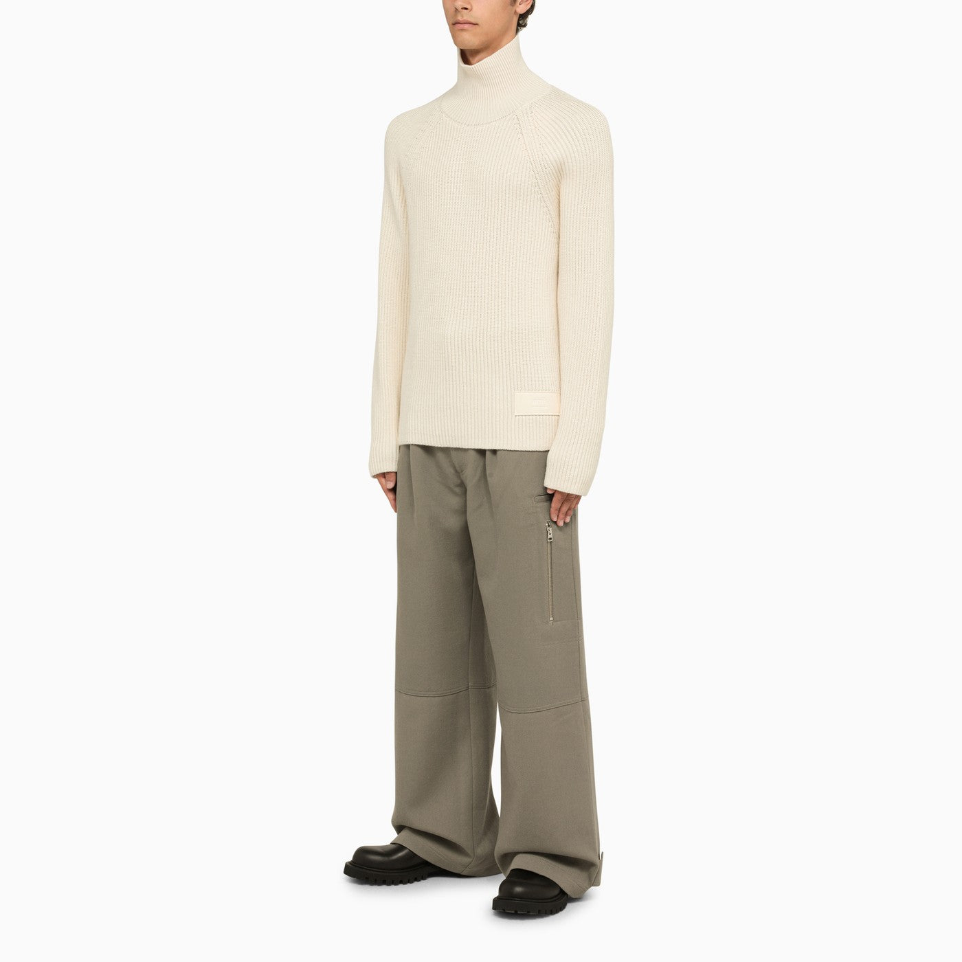 Ami Paris Ivory Ribbed Turtleneck