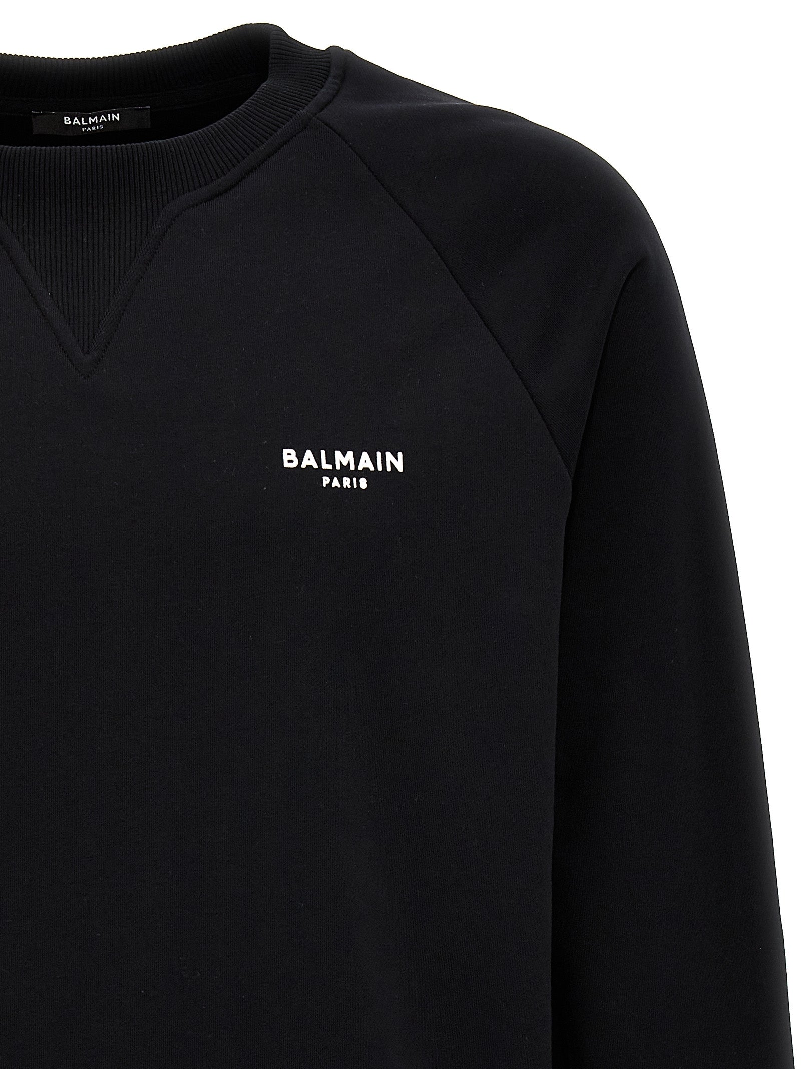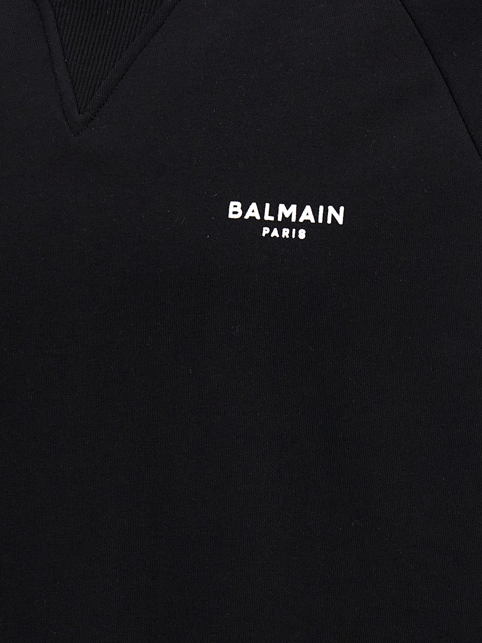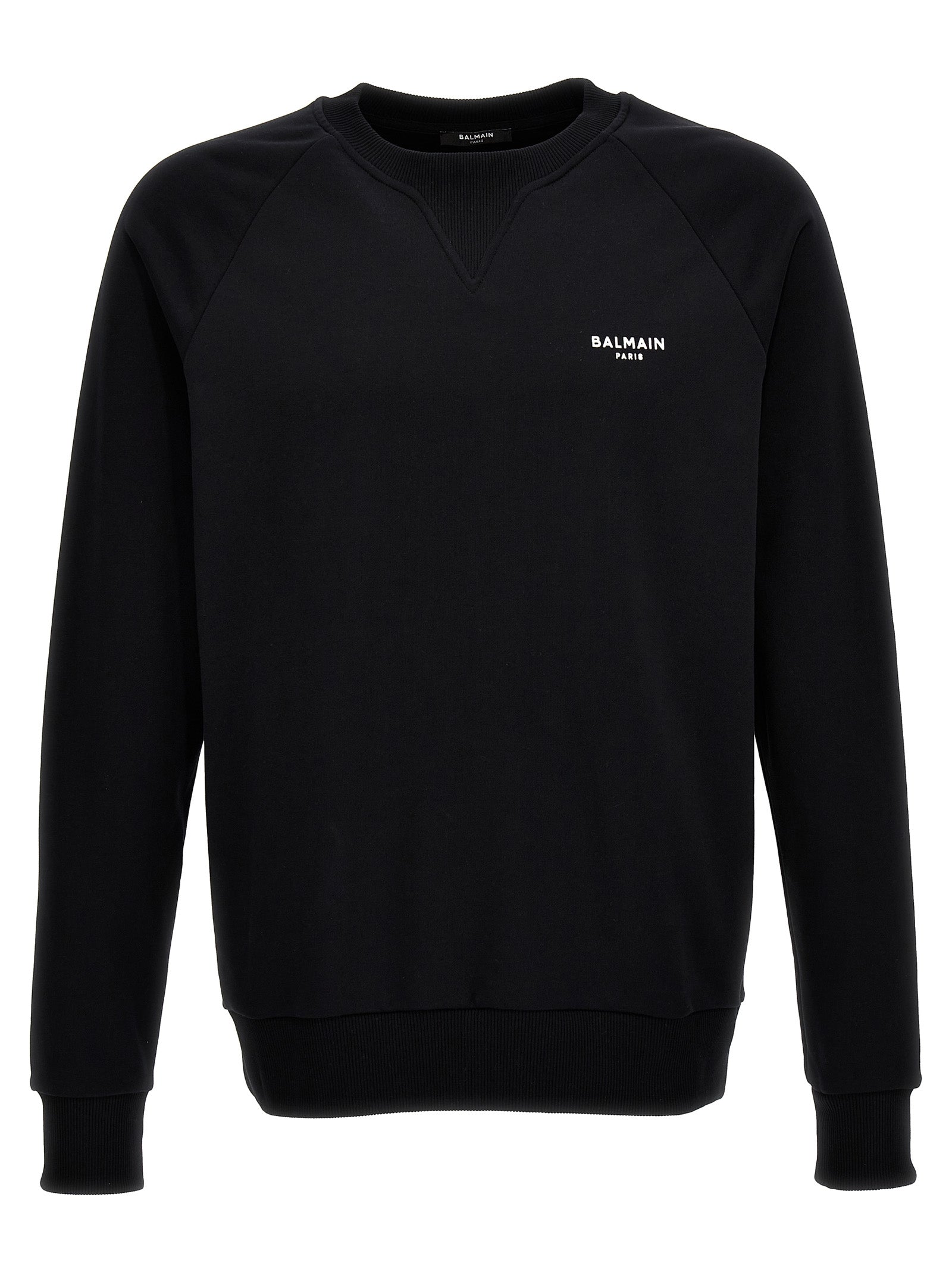 Cotton sweatshirt with front flock logo, crew neck, long cuffed sleeves.