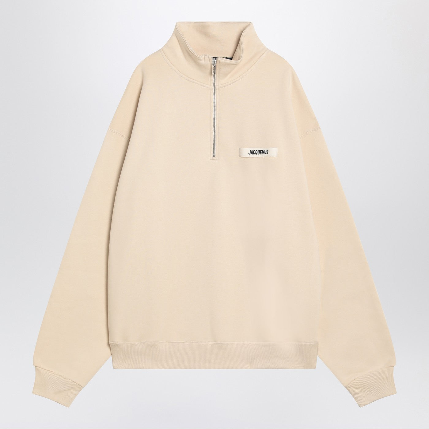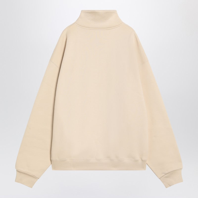 Light beige cotton zip-up sweatshirt by Jacquemus, featuring a high collar, short zip, logo label on the chest, ribbed cuffs and hem.