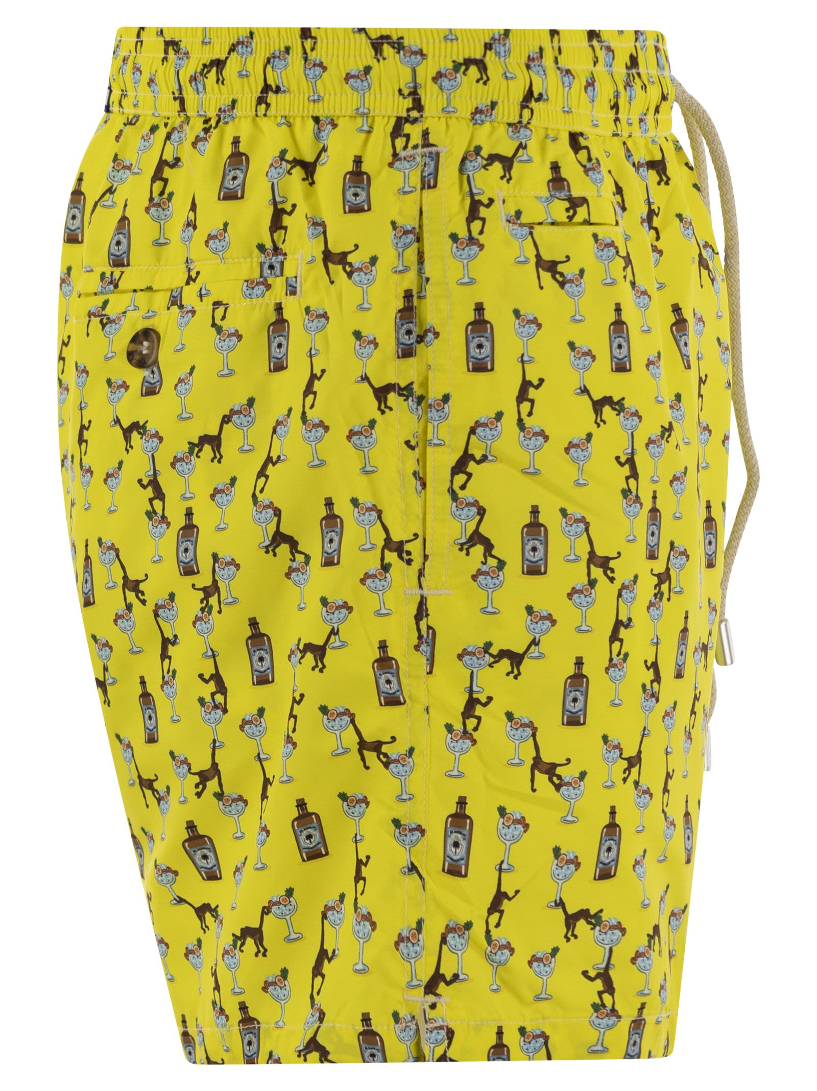 Enjoy your summer holidays with the new Saint Barth swimwear with original and colourful prints! Made of quick-drying fabric with ergonomic inner briefs and drawstring closure. - Lightweight fabric - All-over print - Regular fit - Drawstring closure - Back pocket and front pockets on both sides DESIGNER ID: LIG0003 03699F