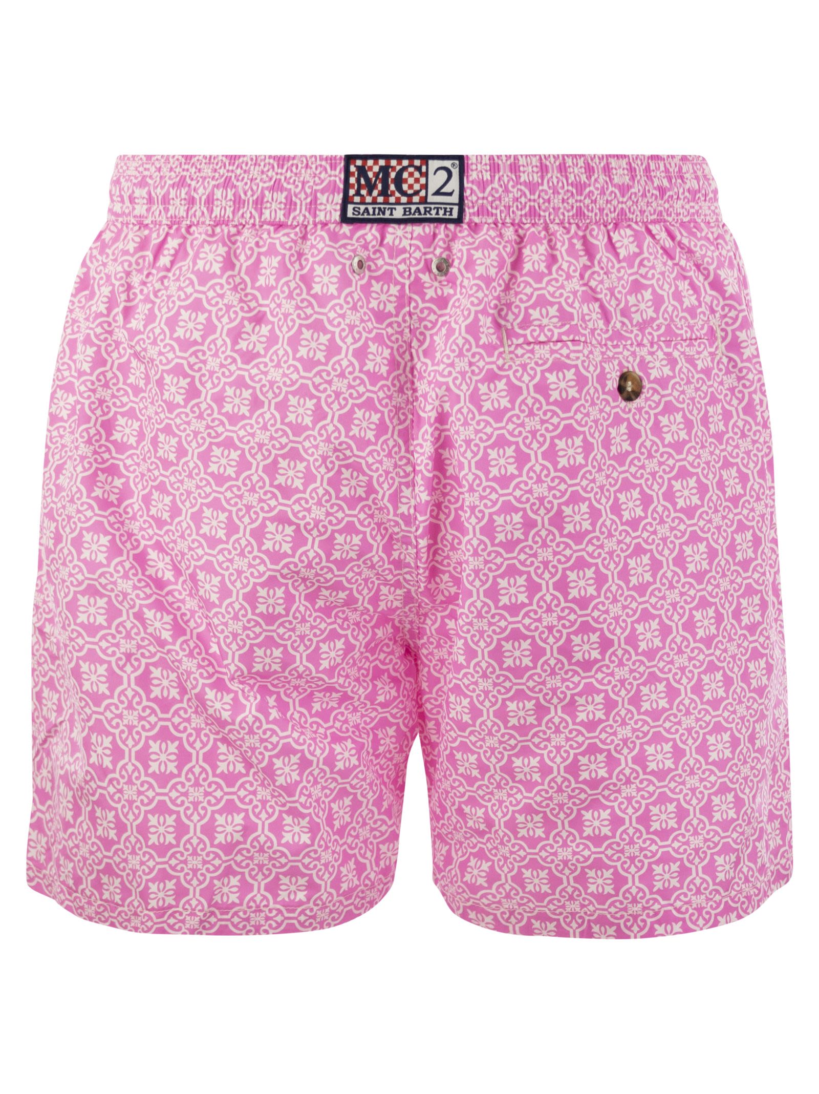 Discover the MC2 Saint Barth men's spring-summer collection! Lots of fun and colourful prints are waiting for you and your great holiday and summer! Classic MC2 Saint Barth men's swimming costume, ultra-light fabric, quick-drying, medium length, lightweight mesh lining, elasticated waist, drawstring closure, front and back pocket with button. - Drawstring waist - Lined with mesh - Pockets DESIGNER ID: LIG0013 03966F