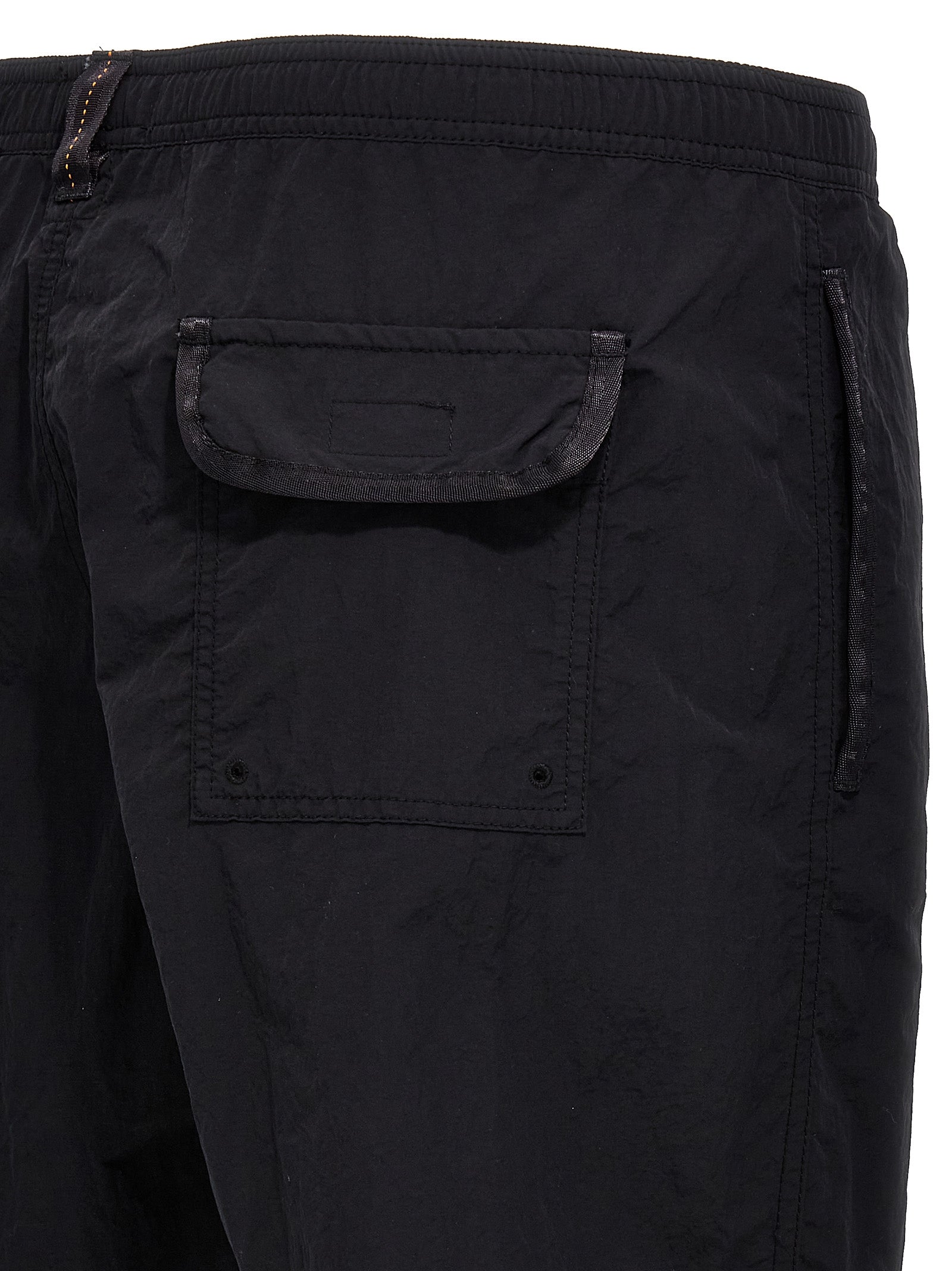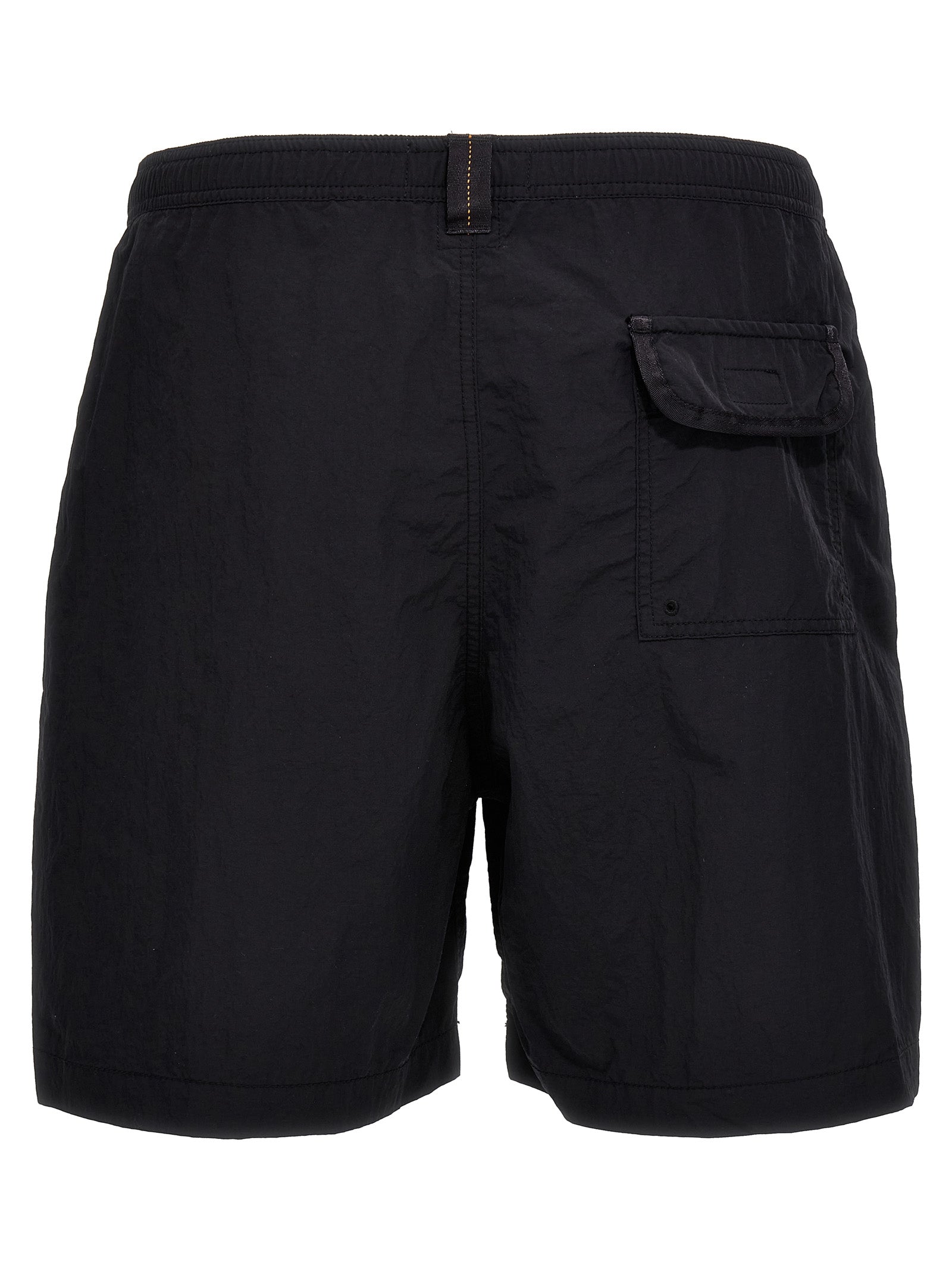 Swim shorts in stretch technical fabric with side logo patch, removable carabiner detail, inner mesh briefs, drawstring elastic waistband.