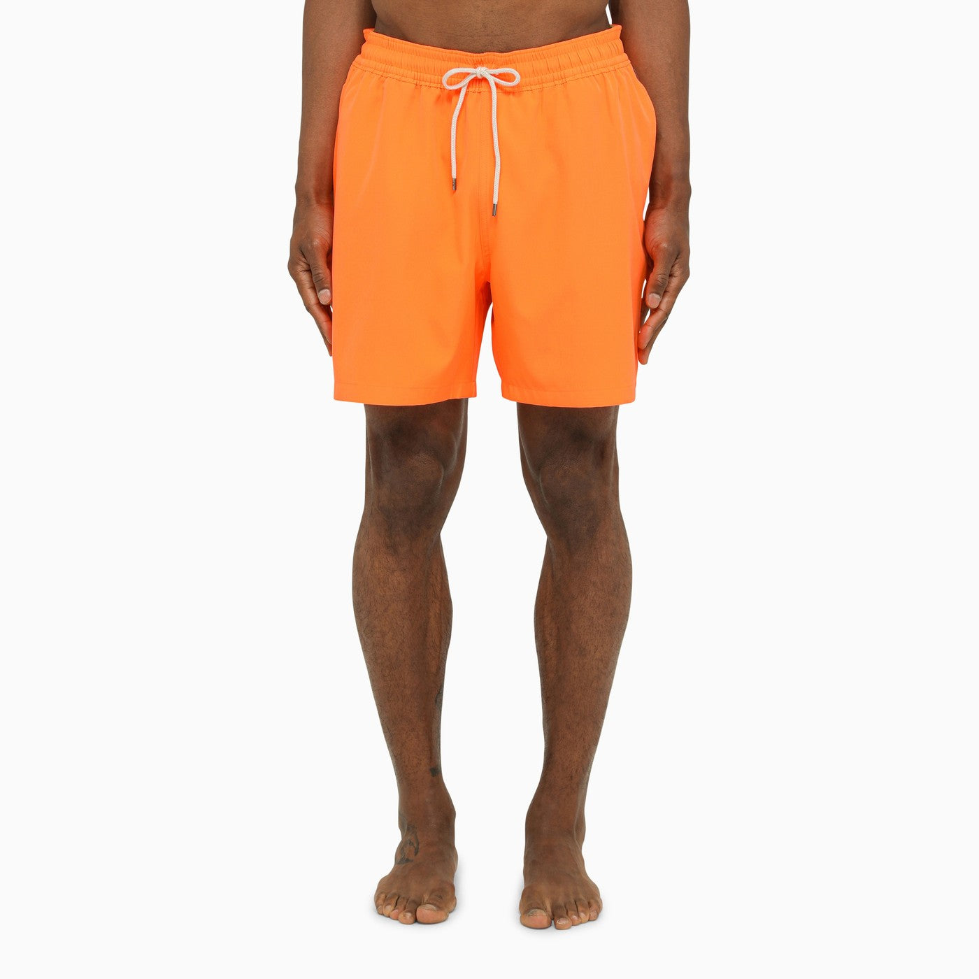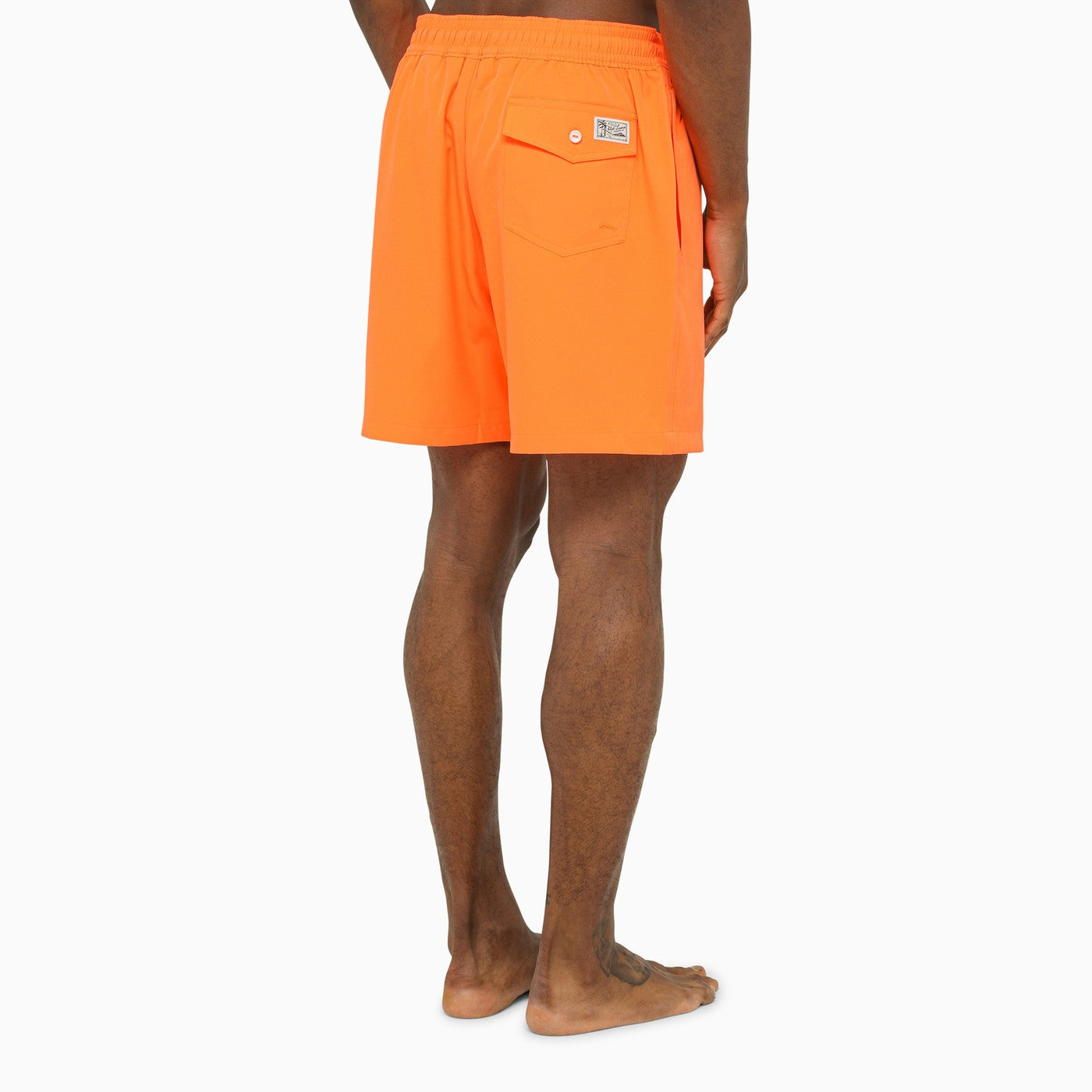 Orange nylon swim boxer shorts by Polo Ralph Lauren, featuring an elasticated waistband, two pockets on the sides and a back pocket with logo.