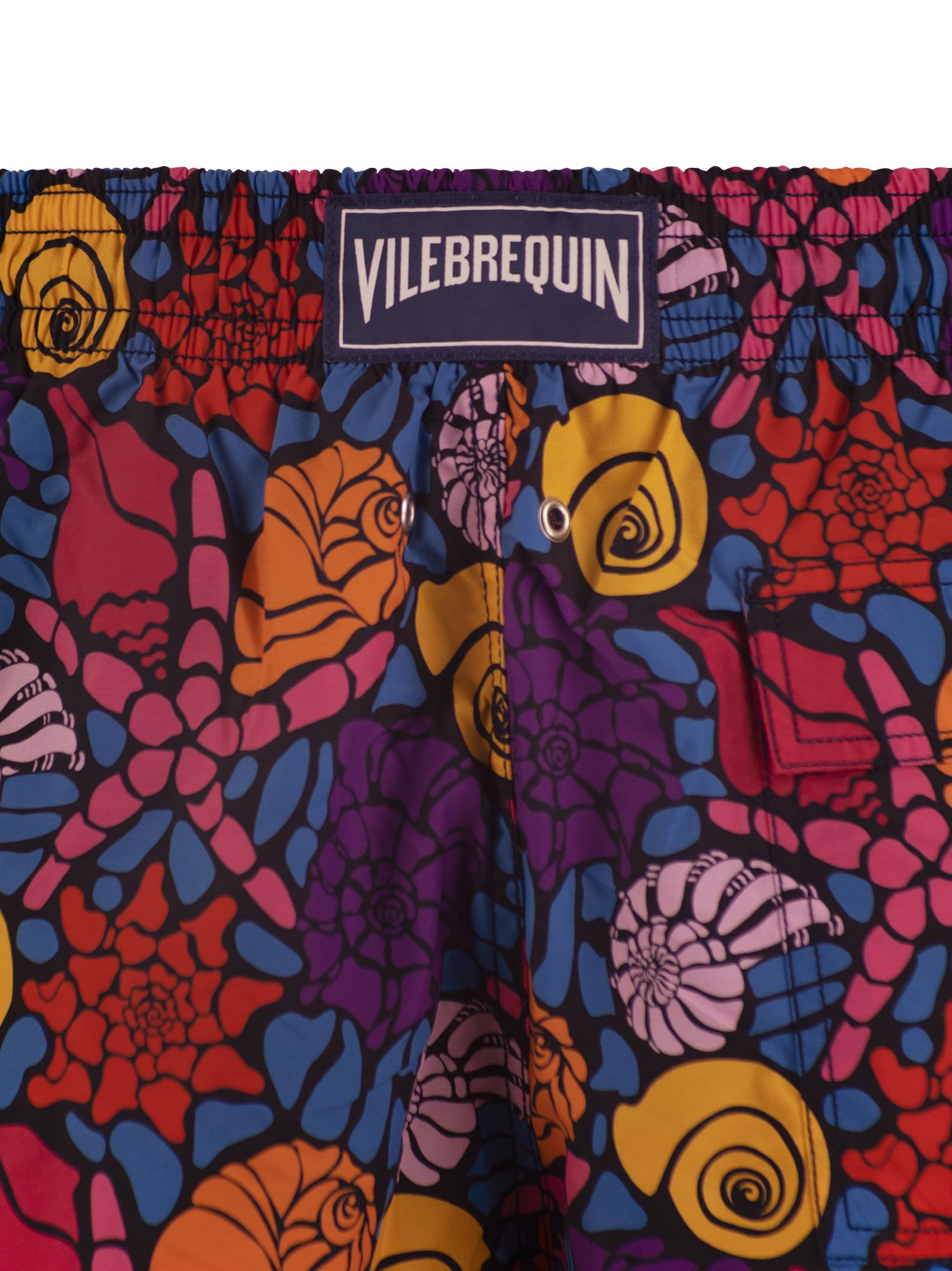 Turn heads at the beach with these printed swimming costumes made of recycled polyamide. Finished with an elasticated waistband and adjustable drawstring for an optimal fit. - Elastic waist swimming costume with drawstring and Zamac tips with Vilebrequin engraving - Side pockets - Hand positioning of the back pocket for perfect visual alignment with the swimming costume print - Two rear eyelets allow water to drain away and prevent the swimming costume from swelling when it emerges in the water - Fully lined with water-resistant mesh (100% polyamide) - Fabrics are treated for quick drying - Men's swim shorts Noumea Sea Shells DESIGNER ID: MOOAB127 390