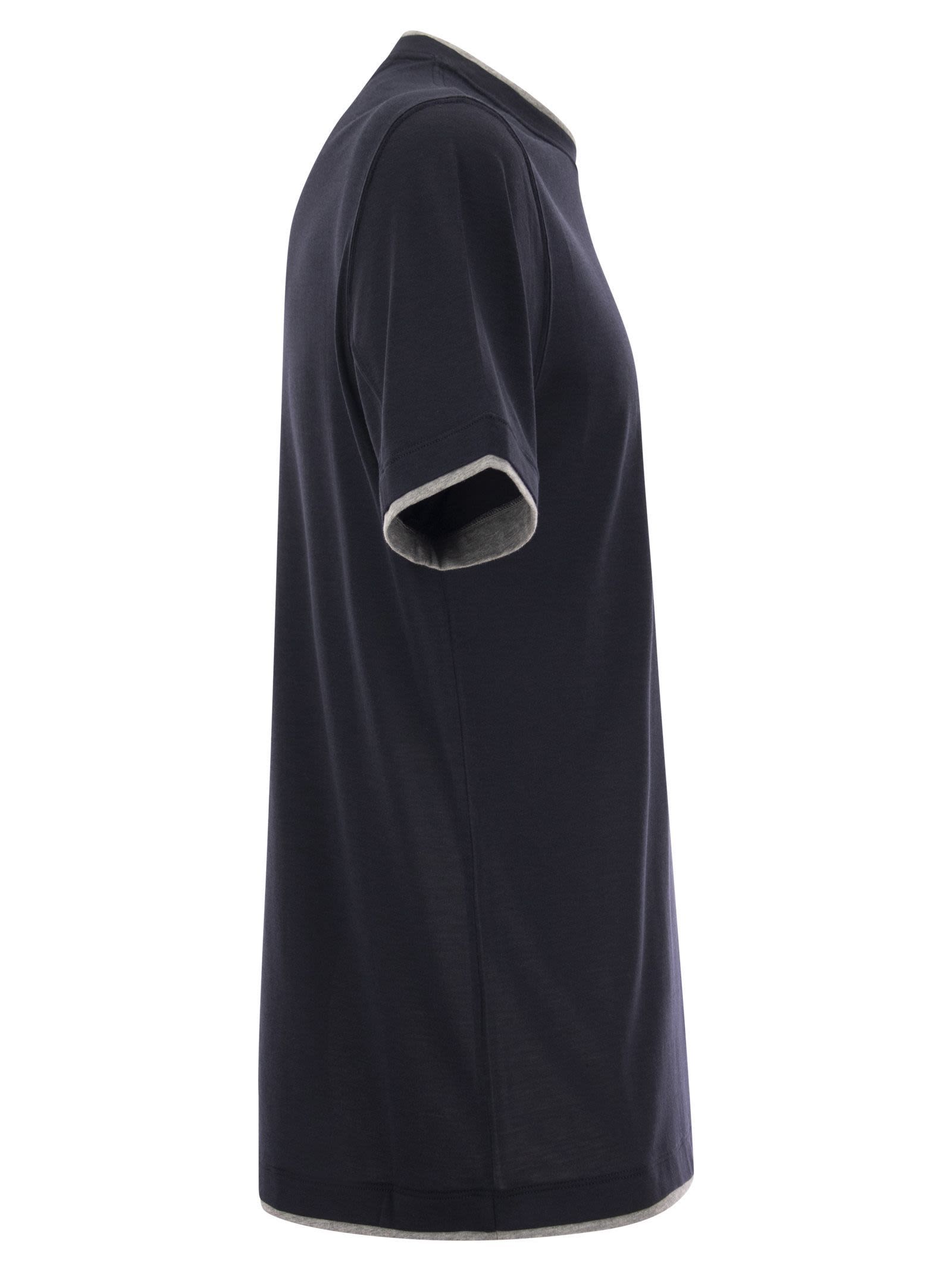 A cotton insert adds colour contrast to the base of the new T-shirt and creates a double layer that embellishes the edges of the collar, sleeves and bottom. The regular fit offers a soft and snug feel. - Crew neck - Short sleeves - Regular fit DESIGNER ID: MD8217427 CW770