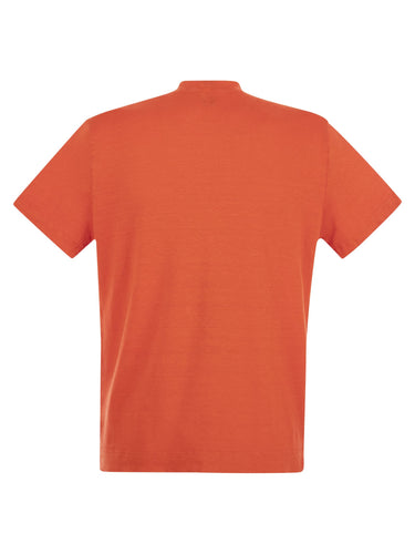 Extensible. Versatile. Shiny. EXTREME FLEX will give you that extra comfort you need. Wear it exposed or use it as a second layer to fill the gap between your skin and your clothes. You can't go wrong with this incredible, luminous blend of precious linen and elastane fibres. - Short-sleeved T-shirt - Round neckline - Linen flex mélange piece-dyed - Made in Italy DESIGNER ID: 6UED0151 158
