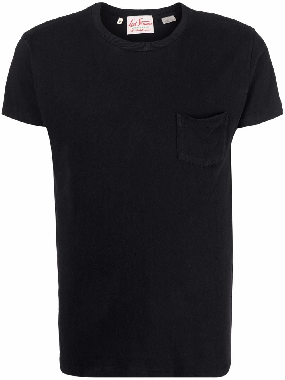 Black cotton chest pocket T-shirt from LEVI'S featuring round neck, chest patch pocket, short sleeves and straight hem.